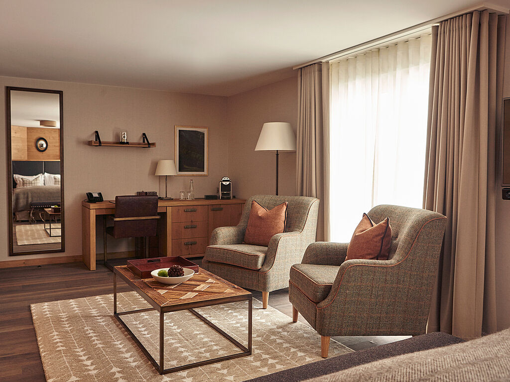 In den Zimmern ist man der Natur sehr nahe: 38 Suiten und Zimmer beheimatet das THE CAPRA insgesamt und avanciert so zum Refugium für Individualisten, die das Gefühl eines privaten Rückzugsortes geniessen und dabei alle Verwöhnregister eines Luxushotels nicht missen wollen. Die Zimmer sind elegant-gemütliche Wohnoasen, die auf mindestens 25 m² Fläche (Signature Doppelzimmer) genügend Raum zur Entfaltung geben. Daneben offeriert das Zimmer-Portfolio des Hotels noch größere Wohnräume mit den Signature Suiten (45 m²), Deluxe Suiten (55 m²) und den drei geräumigen Penthouse Suiten (75-100 m²) mit eigenem Kamin im Wohnzimmer.