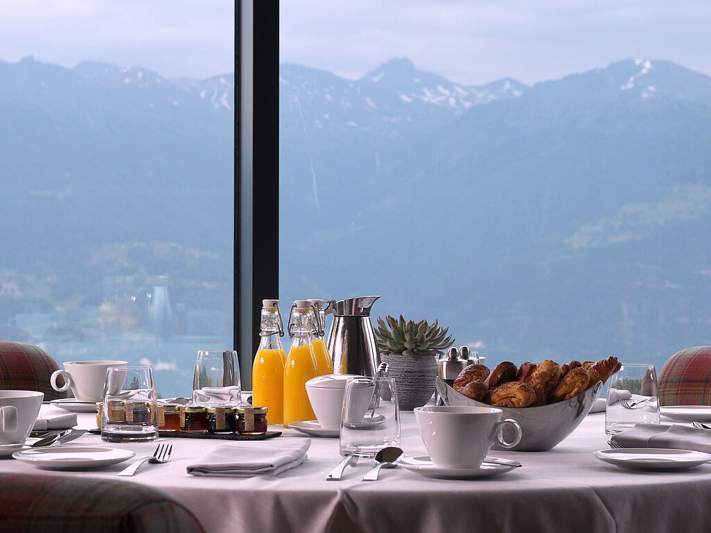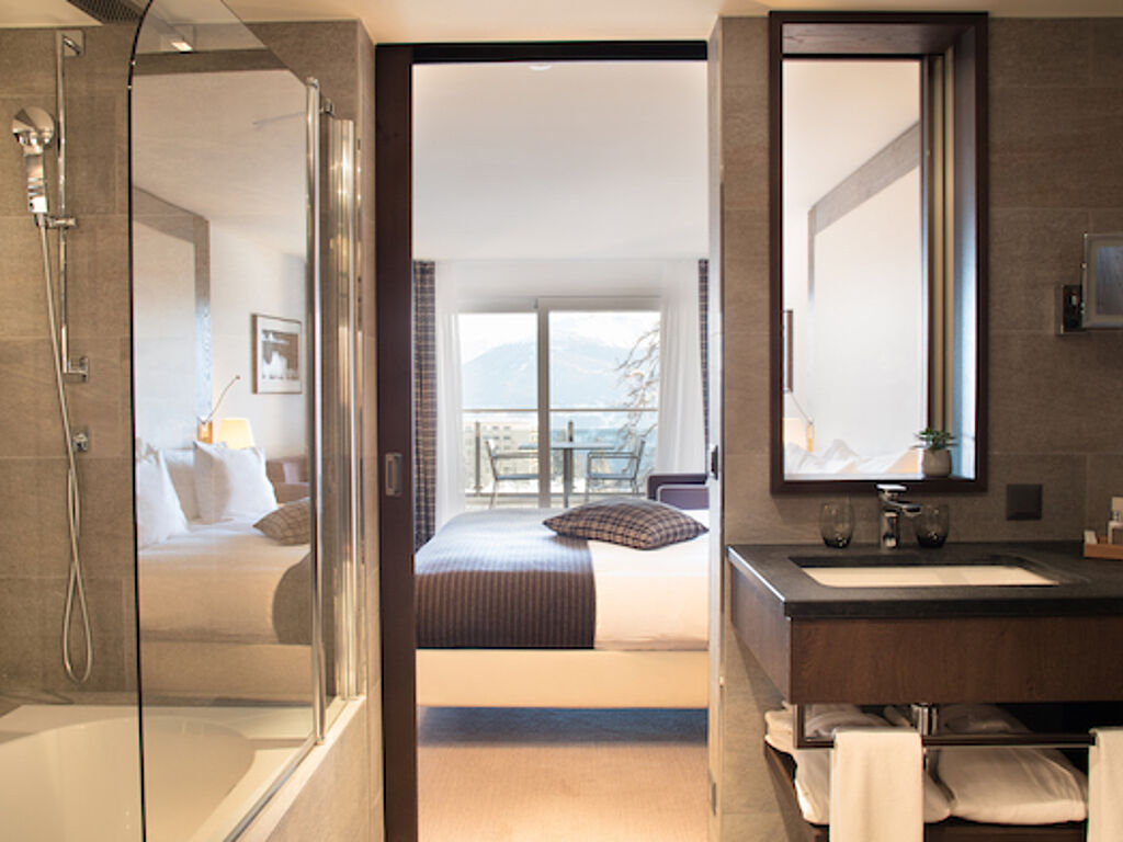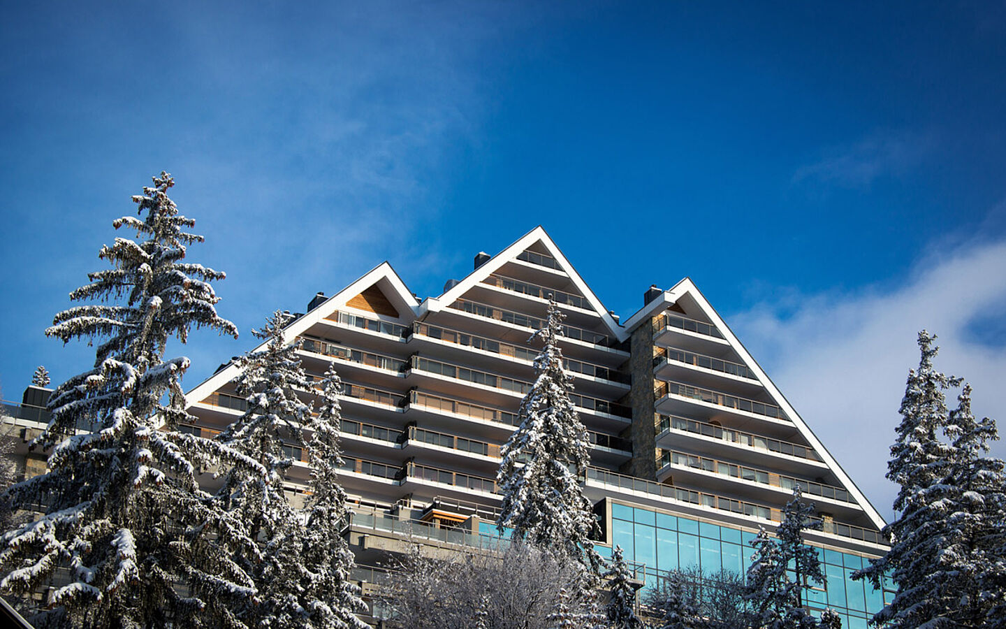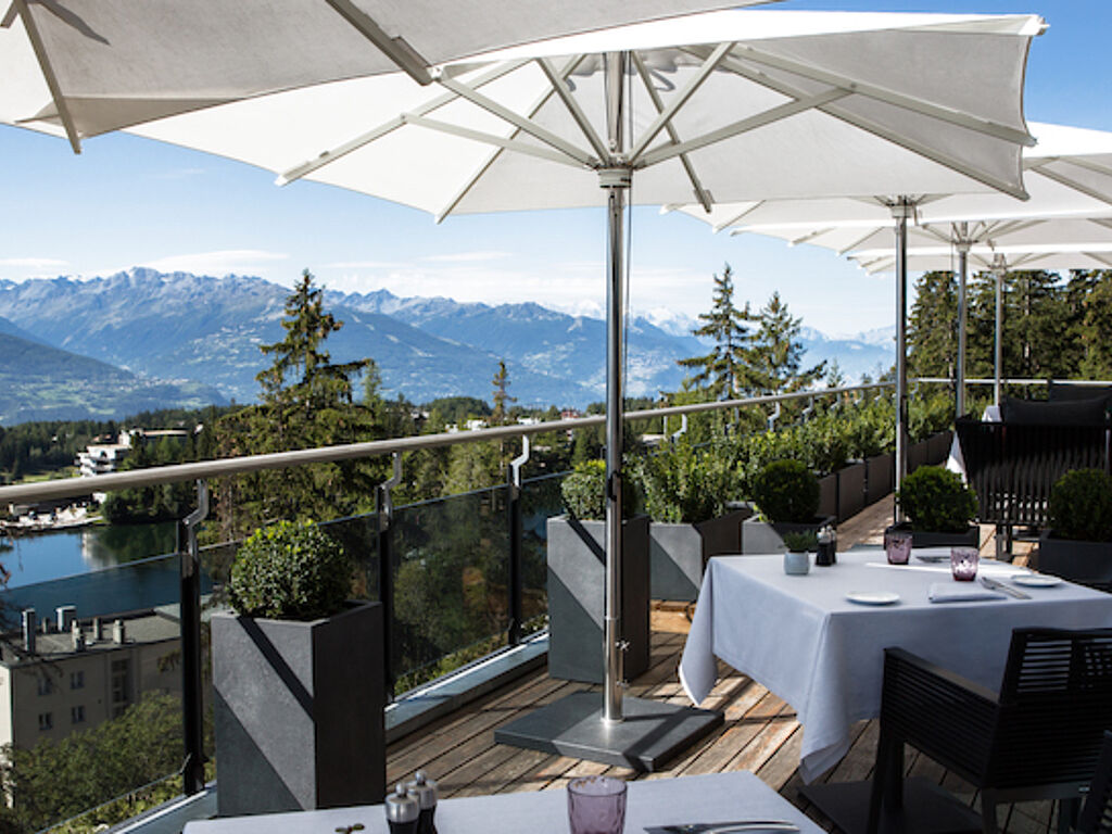 Eine Architektur wie eine Skulptur, eine Lobby wie eine Ausstellungsfläche: Auf 1'500 Metern über Meer auf einem sonnenreichen Hochplateau hoch über dem Rhonetal, wartet ein außergewöhnliches Hotelerlebnis mit phänomenalen Überblick.