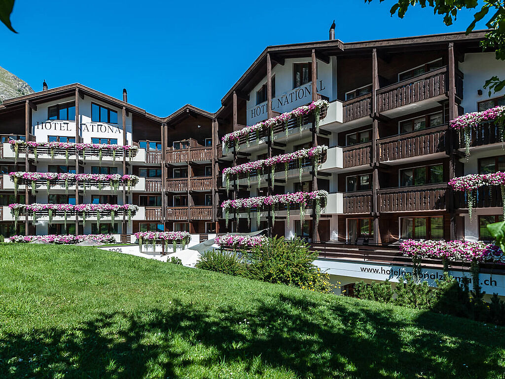 Authentizität. Wärme. Herzlichkeit. Das sind die Leitmotive, die das Hotel National so einzigartig machen. Draußen geschmückt mit hinreißend geschnitzten Holzbalkonen (sommers wohlgemerkt mit üppigen Blumen bestückt), innen getragen von edlen Vollholzelementen, die dem Ambiente den richtigen Touch an Alpin-Flair verleihen. Rundum ein traumhaft stilvolles Refugium mit einer großen Portion authentischer Swissness. Dass man beim Blick nach draußen die mystische Spitze des Matterhorns aufblitzen sieht, ist dabei nur noch das majestätische Tüpfelchen am regionalen Luxus.