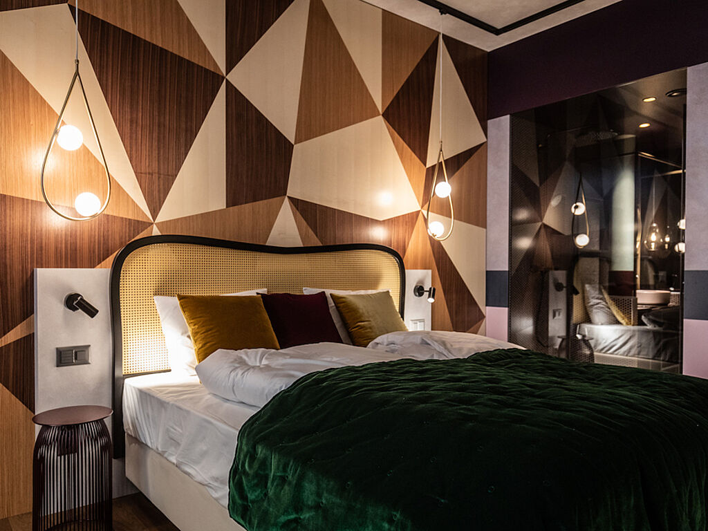 Erfreuen darf man sich aber nicht nur an kulinarischen Höhenflügen und schöner Umgebung – das Hotel zeigt sich auch in Sachen Ausstattung als wahres Ästhetik-Eldorado. Das mehrfach ausgezeichnete Designerteam von Sylt Trampoli aus Göteborg zeichnet für exzeptionelle Konzeptionen und formvollendetes Design verantwortlich, bei dem trotz modernstem Interieur und kreativer Kreationen kein Stück der alpinen Gemütlichkeit verlorengeht. Alle 47 Zimmer und Suiten befinden sich in der obersten Etage des Stenna Gebäudes und überzeugen mit farbenfrohen Akzenten, samtenen Details und innovativen Beleuchtungselementen. Ein wahrer Wohntraum!