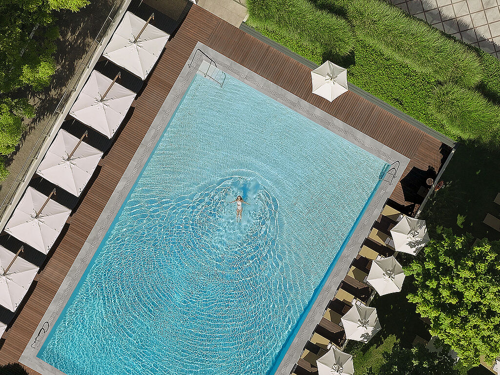 Und weil man das Nützliche bekanntlich mit dem Angenehmen verbinden sollte, steht Gästen des Hauses das himmlische Spa by Clarins zur Verfügung, in dem sich die verdiente Entspannung einstellen kann. In fünf Behandlungsräumen werden auch tiefsitzende Verspannungen wegmassiert, während Hammam und Sauna das Ihre tun.