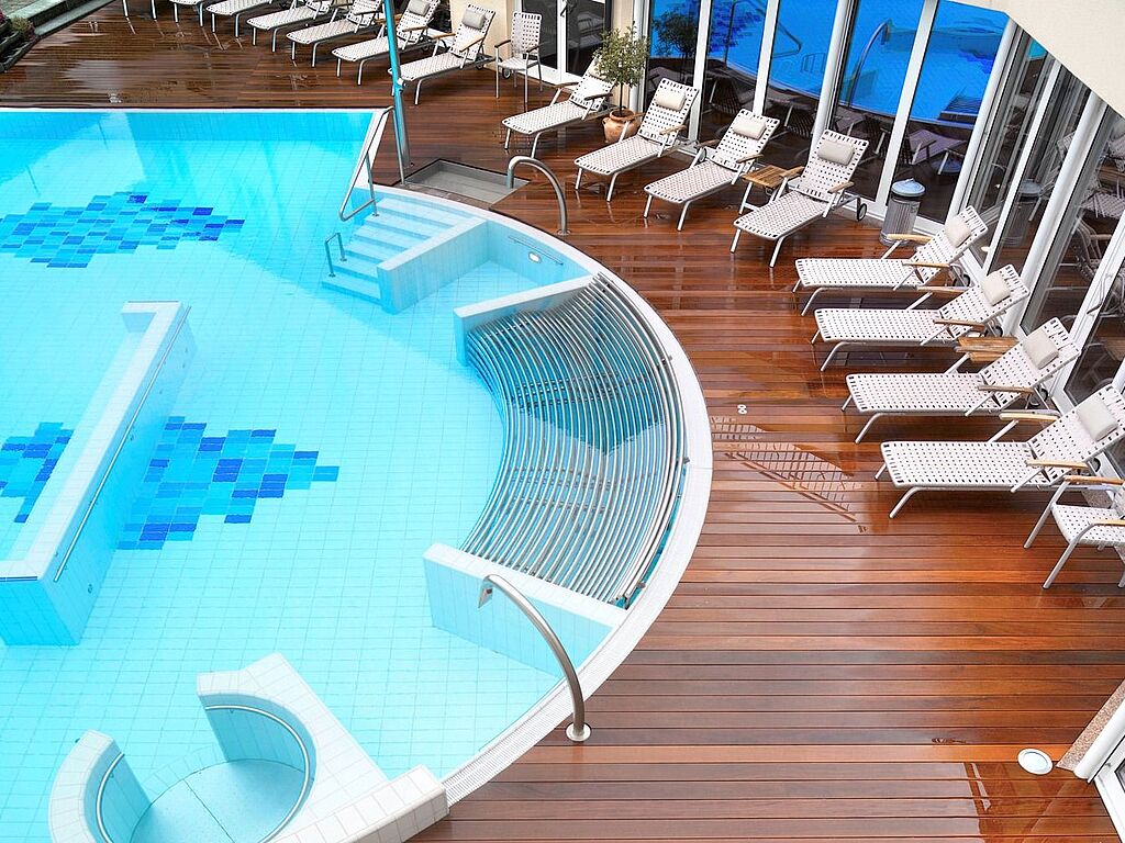 Vollkommene Entspannung genießen Sie im erlebnisreichen Innen- und Außenbad mit prickelndem Quellwasser. Im Sommer lädt das tiefblaue Nass zu erfrischenden Schwimmzügen ein, im Winter verzaubern Dampfwolken das Wellenspiel. Aufbereitet wird das 33°C warme Wasser, wie übrigens der Großteil des gesamten Warmwasserverbrauchs, von der hoteleigenen Erdsonden-Wärmepumpe. Auch die Saunawelt ist eine wahre Wohlfühl-Landschaft: Zum gediegenen Schwitzen locken hier Tepidarium, Finnische Sauna, Türkisches Dampfbad und Infrarot-Kabinen, für anschließende Erfrischung sorgen Frigidarium, Erlebnisduschen und Frischluft-Tretbad. Bewegliche Gelenke, ein leistungsfähiges Herz und effektiv arbeitende Muskeln, das alles strahlt Dynamik und Kraft aus – diese können Sie im Fitnesscenter – auch gern unter Anleitung eines Personal Trainers – an hochmodernen Geräten trainieren. Man sieht also: Im Hotel Hof Weissbad hält man Sie sich mit viel Spaß an der Bewegung spielerisch leicht fit.