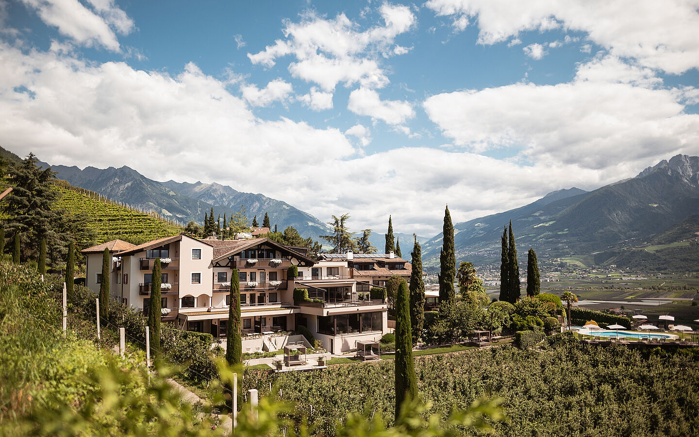 Tage in glücklicher Lage: DAS GRAFENSTEIN Baby- und Kinderhotel liegt malerisch eingebettet in den Obst- und Weingärten von Tscherms und verspricht wunderbare Tage mit der Familie.