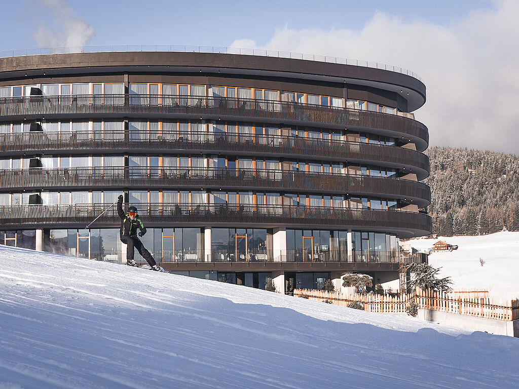 Direkt vor der Tür auf 1.400 Metern beginnen die 55 Pistenkilometer des Skigebiets Gitschberg Jochtal. Von hier können Kinder direkt mit dem Skilehrer loswedeln, während die Erwachsenen ganz unbeschwert den Pistenspaß genießen können. Zusätzlich sorgen Schneeschuhwanderungen, Skitouren Spurensuche und Fährtenlesen im Schnee und vieles mehr für kostbare Erinnerungen.