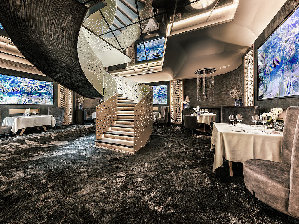 Neben Entspannung ist auch Genuss ein wesentlicher Faktor, um zu innerer Balance zu finden. Neben dem klassischen Panoramarestaurant mit Seeblick begeistert die See Lodge mit ihrem auf Fischgerichte spezialisiertem underwater restaurant. Mâitre d’Hotel und Sommelier Matteo Lattanzi rundet die kulinarischen Hochgenüsse mit edlen Tropfen aus dem exklusiven kleinen Weinkeller perfekt ab.