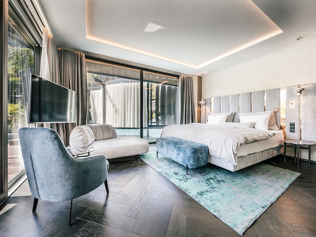Mit nur 26 Wohneinheiten ist die See Lodge eines der kleinsten 5-Sterne Luxushotels in Südtirol. Das Repertoire reicht von edlen Suiten bis hin zu noblen See-Suiten mit direktem Einstieg in den 4.500 m² großen Badesee und vier extra-luxuriösen See-Villen (eine davon zweistöckig), umgeben von funkelndem Wasser. Modernes Design und hochwertige Materialien –Stein, Glasfassaden, dunkles Holz -bestimmen die Architektur des leicht maledivisch anmutenden Luxushotels. Absolutes Highlight der See-Villen ist die großzügige Terrasse mit Privatpool, finnischer Sauna, Relaxliegen und Hängematte über dem Wasser. Durch den weitläufigen Sichtschutz genießt man hier Privacy pur.