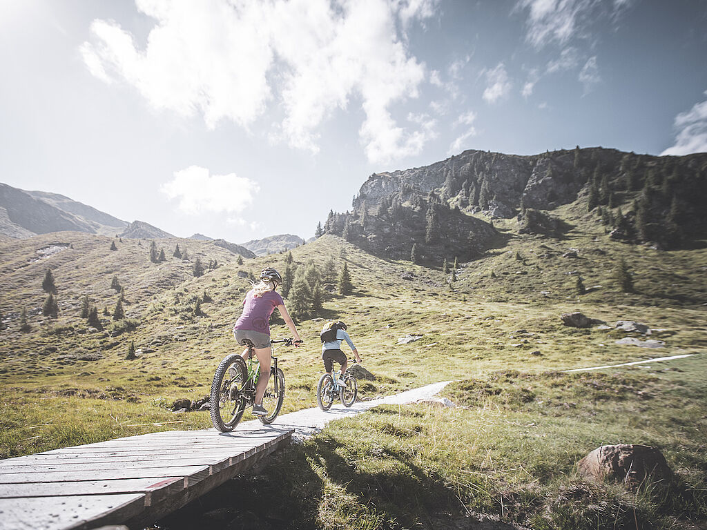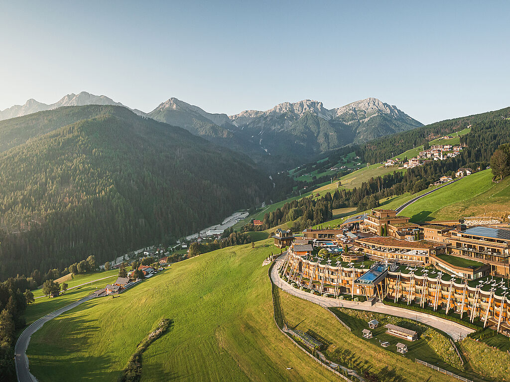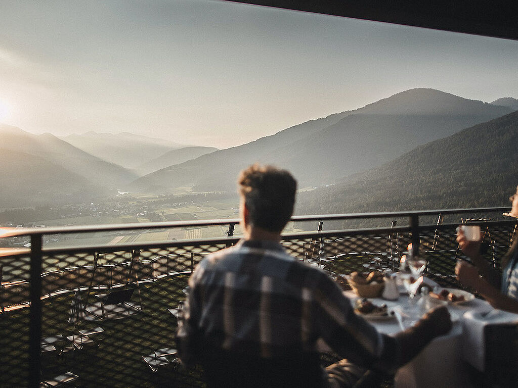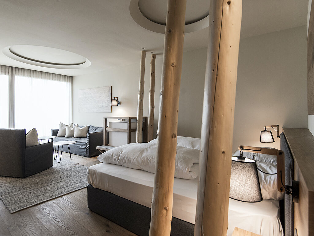 Die Zimmer und Suiten im Landhausstil bieten eine behagliche Wohnatmosphäre. Besondere Highlights sind die Panoramazimmer vom Typ Alpen, Belvedere und Bruneck: Hier schläft man vor einer riesigen Panorama-Glasfront, die überwältigende Bergkulisse und den Talboden des Pustertales direkt vor den Augen.