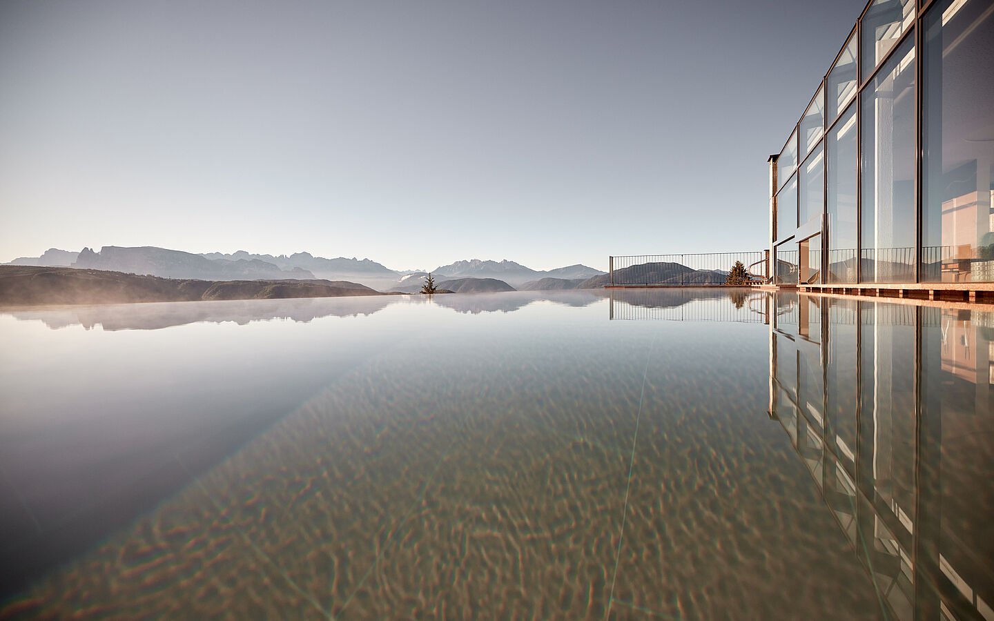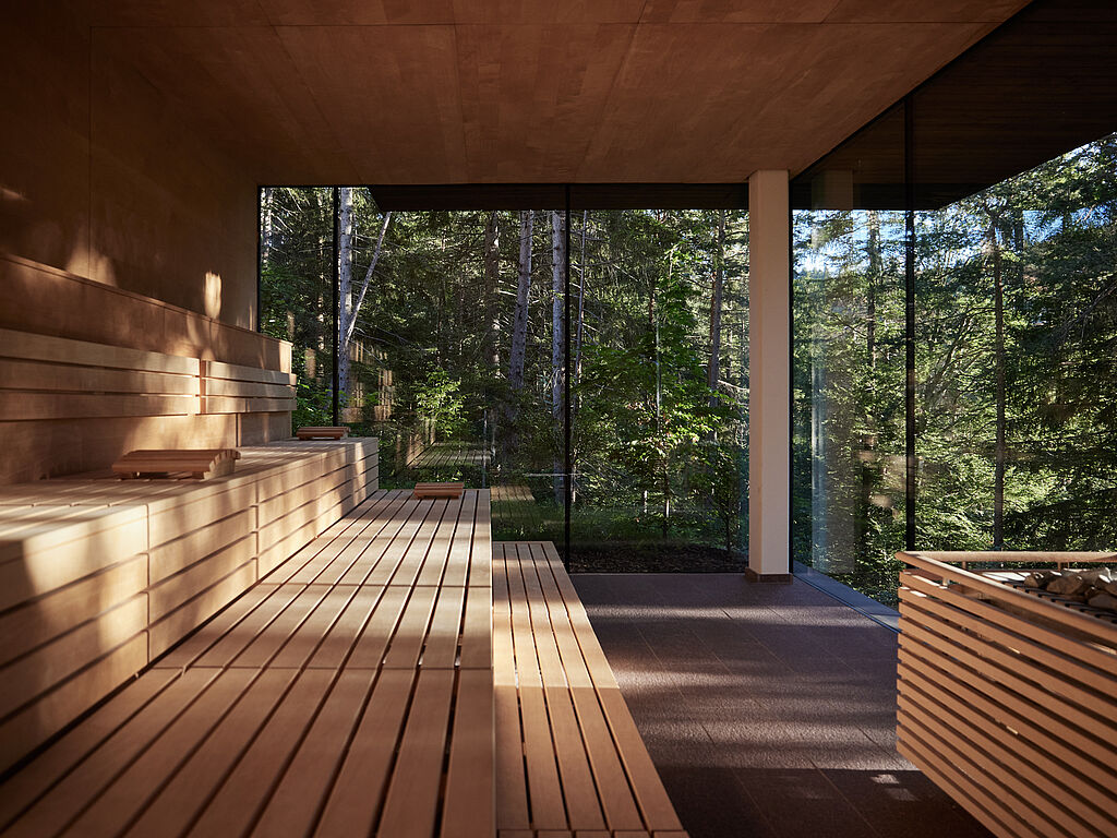 Entspannung für Geist und Seele bietet das Forest Spa, das zu 99 % chemiefrei ist und schonend in den Wald integriert wurde. Erreichbar ist es über einen Meditationspfad mit verschiedenen Stationen, die zur Achtsamkeit anregen. Den Gast erwartet verschiedene Saunen, Ruheraum, Yogaraum und intensiven Waldbegegnungen. Im Indoor-Pool und dem 17 Meter langen Infinity Pool kann man sich schwerelos zwischen Himmel und Erde treiben lassen. Die Sky Pools machen Badegenuss vollkommen – und berühren mit einem Blick über die Baumwipfel hinweg bis zu den majestätischen Berggipfeln der Dolomiten.