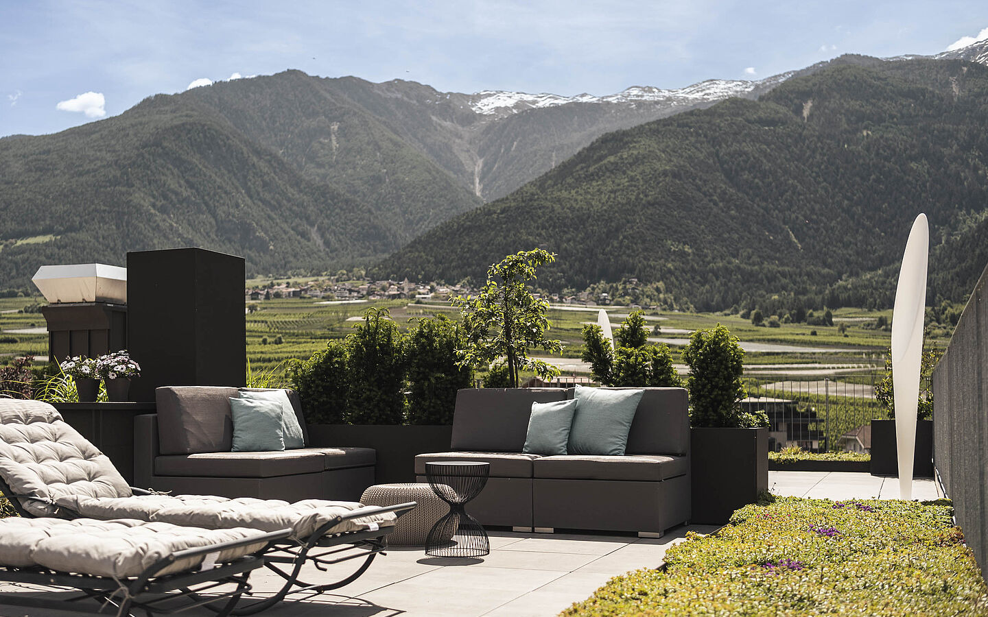 Herrliche Entspannung bietet auch das Natur. Veda. Spa mit Bade- und Saunalandschaft mit 9 verschiedenen Saunen, Dampfbädern, In- und Outdoorpool mit Wasserfall und Sprudelliegen. Wellnessbehandlungen – ob klassisch, fernöstlich oder nach TCM, mit ätherischen Ölen, Südtiroler Hausmitteln oder Kräuter und Essenzen der Südtiroler Marke Threhs – schenken Wohlbefinden und innere Ruhe.
