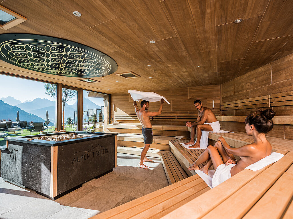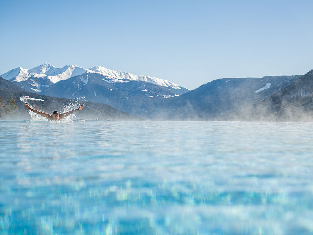 Der Begriff Alpen-Wellness wird im Hotel Alpen Tesitin großgeschrieben. Die umliegenden Berge nehmen dabei einen ganz besonderen Platz ein: Sie sind Kraftspender, Inspiration, Heilbringer und Förderer der Gesundheit. So spiegelt sich das imposante Bergpanorama in Hallen- und Freischwimmbad genauso wie in den anderen Bereichen der Wellnesswelt. Im traumhaften Spa- und Wellnessbereich erleben Sie Wohlbefinden in Vollendung. Der Blick in die Dolomiten erobert Ihr Herz im Sturm. Sie schwimmen in der Poleposition im Sonnen-Infinity-Pool mit Wow-Effekt und 180°-Traumaussicht. Es erwarten Sie ein Infinity-Sole-Relax-Pool, ein Whirlpool, ein Tauchbecken sowie neun verschiedene Saunen und Dampfbäder. Durch eine Schleuse gelangen Sie vom großzügigen Panorama-Hallenschwimmbad in den ganzjährig auf 34 °C beheizten Außen-Pool, wo Sie die frische, heilsame Bergluft sowie einen atemberaubenden 180°-Panoramablick genießen. Bei den motivierten Spa-Mitarbeiterinnen und -Mitarbeitern befinden Sie sich in den besten Händen. Einfühlsamkeit sowie Behutsamkeit sind die Grundzutaten der verschiedenen Behandlungen. Denn Ihre Auszeit im Alpen Tesitin soll für Sie ein sinnliches Highlight sein.