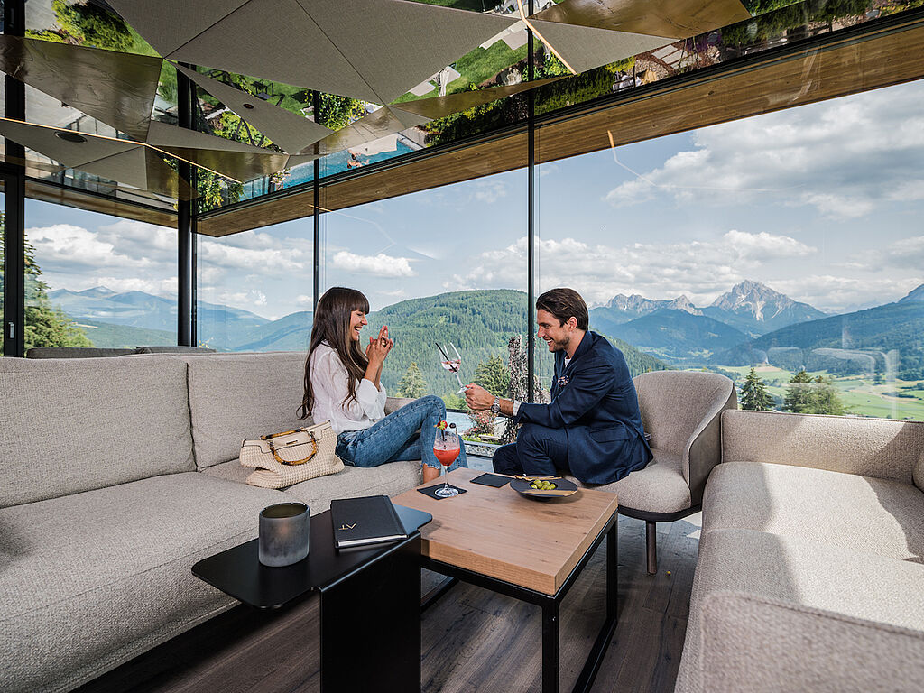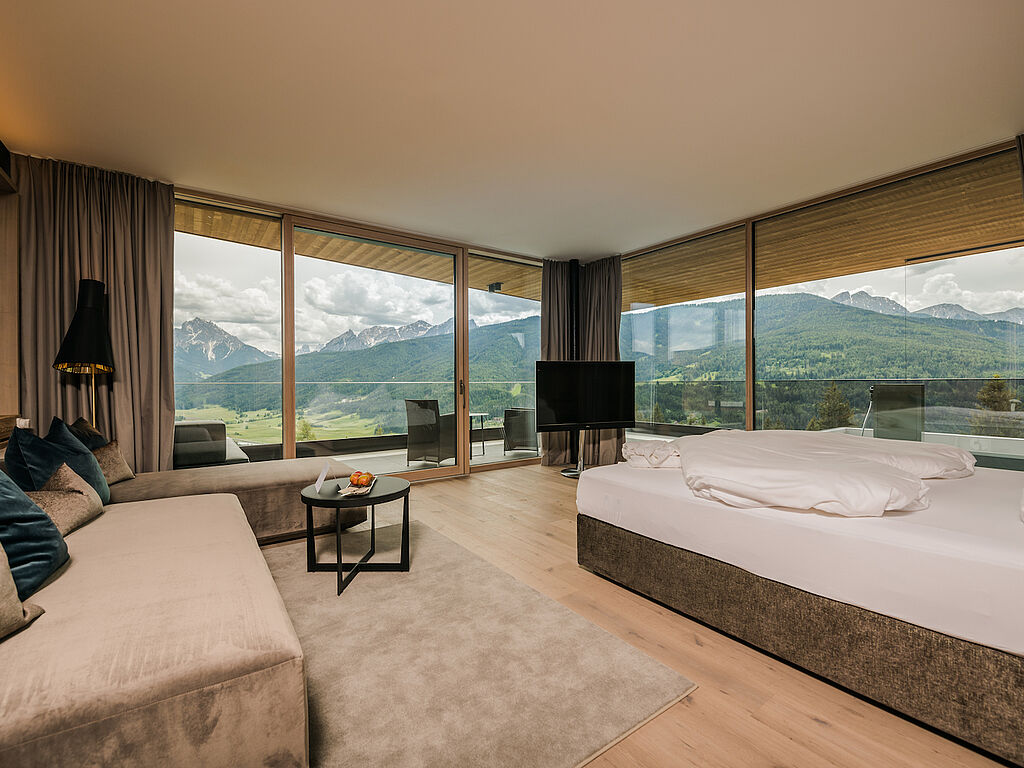 Inspiriert von der einzigartigen Landschaft, die das Alpen Tesitin umgibt, erhält die Natur ihre ganz eigene Bühne. Große und bodentiefe Glaselemente geben den Blick frei auf die imposanten Bergriesen und auch der (siebte) Himmel scheint näher.  Das Alpen Tesitin begeistert nachhaltig: Mit viel Passion für die ursprüngliche Schönheit, den bodenständigen Wurzeln, den klaren Linien und edlen Materialien. Alles im Einklang mit der Natur. Mit der neuen lichtdurchfluteten Hotelhalle, den stylischen Speiseräumen und der vollverglasten Bar hat man im Alpen Tesitin die Natur ins Haus geholt. Die eleganten Zimmer und Suiten, wie z. B. die moderne vollverglaste Alpinsuite (mit 50 m2), die Cristallosuite (mit 42-44 m2) und die exklusiven Romantiksuiten haben alle einen atemberaubenden Blick auf die Dolomiten oder auf die umliegenden Wiesen und Wälder.