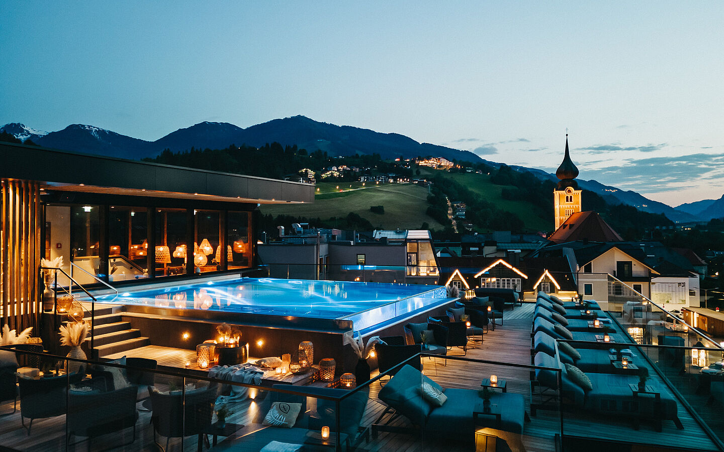 Wellness + enjoy = enJOyness, ist doch ganz einfach! Der 600 m² große Wellnessbereich enJOyness mit Dachterrasse und beheiztem infinitySKY-Pool zeigt, dass diese Formel nicht nur Theorie ist. Ob im SCHWITZkasten, im Sole-DAMPFkessel oder im WARMLUFTbad - jeder findet hier sein wohlig warmes Lieblingsplätzchen. Zum Abkühlen gibt es eine Schwalldusche und den EISregen für die Mutigen. Auf dem Dach relaxt man am Infinity Pool und kann im Winter Skifahrern dabei zusehen, wie sie die Piste runter carven, im Sommer hält die Poolbar kühle Drinks bereit.