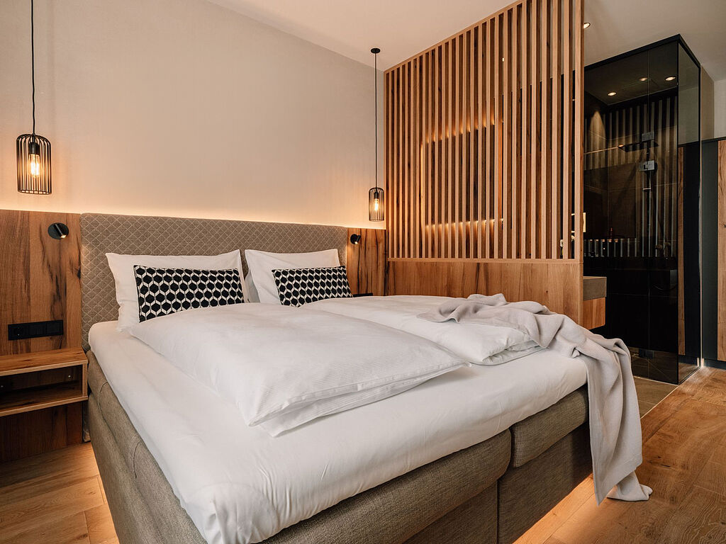 Auch die Zimmer und Suiten vermitteln diese Weltoffenheit und Lässigkeit. Durch den Mix aus urbanen und traditionellen, alpinen Elementen, aus Holz und hellen Stoffen, entsteht ein kuscheliges Zuhause auf Zeit.
