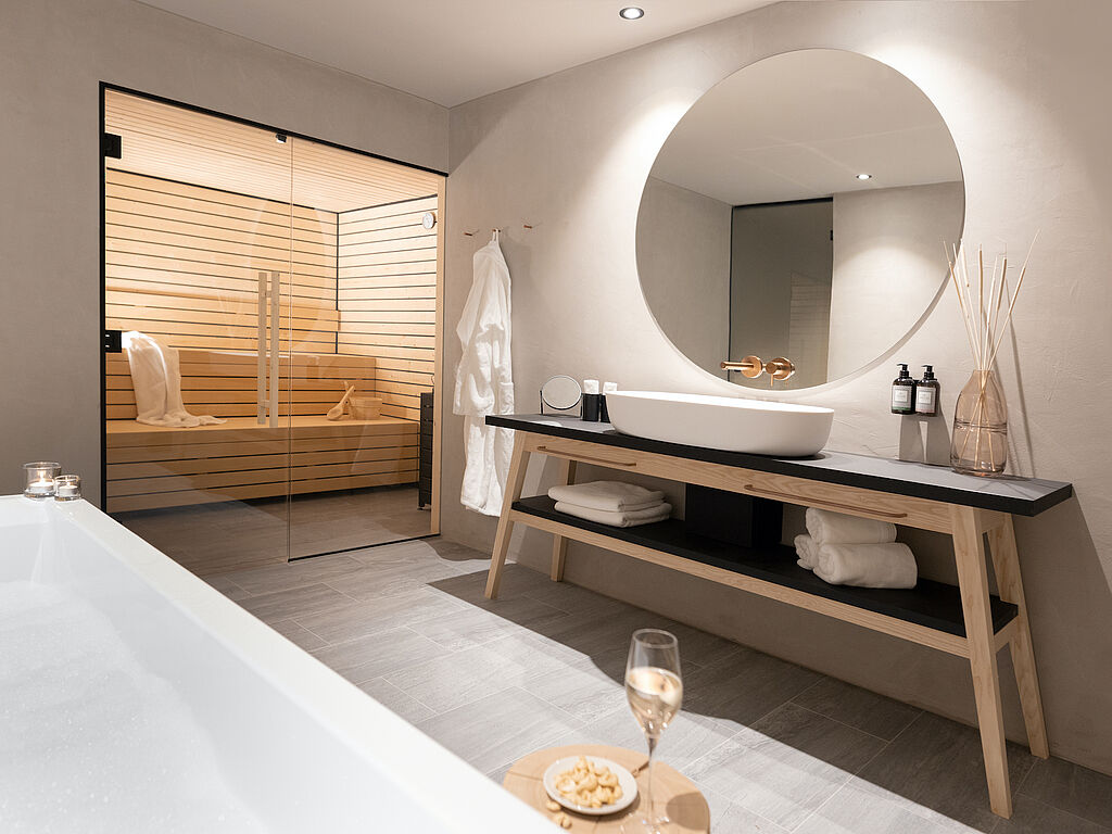 Gleich zwei Spa-Bereiche sorgen für Entspannung. Das AMRAIs Stólla ist eine Hommage an den Bergbau, in denen jahrhundertelang Kupfer gewonnen wurde. Eingehüllt in die Düfte von Thymian, Lavendel, Brunella und Frauenmantel, wird es immer wärmer, je weiter man ins Innere vordringt. Im Maisäß-SPA mit herrlichem Dachgarten genießt man duftende Heubäder, verschiedene Saunen und zieht im endlos erscheinenden Infinity Sky Pool vor der atemberaubenden Bergkulisse seine Runden.