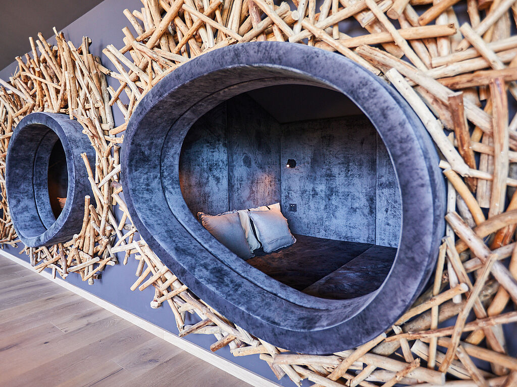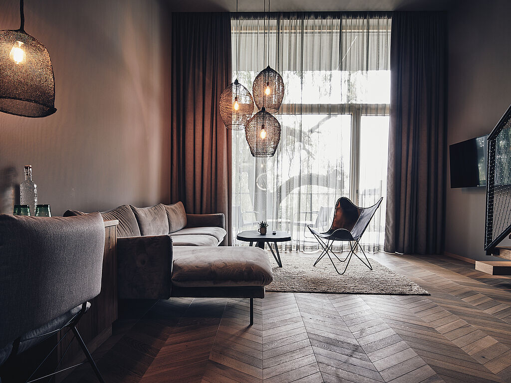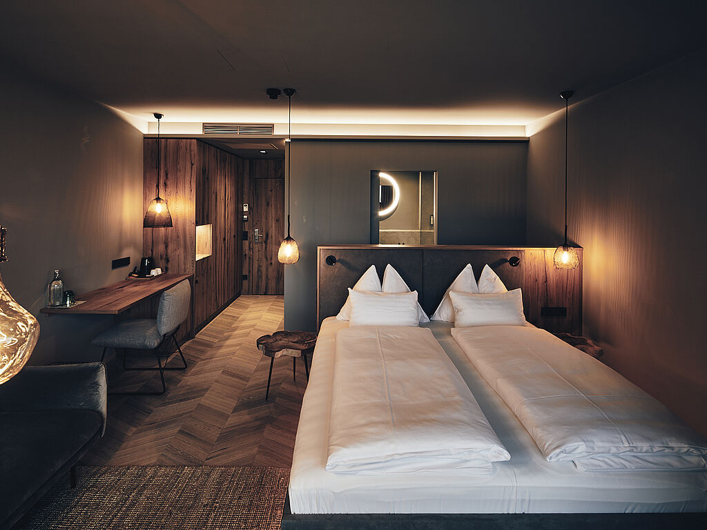 Hier verbindet sich traditionelle Gastfreundschaft mit urbanem Lebensgefühl, verschmelzen in den Zimmern und Suiten natürliche Materialien und von der Bergwelt inspirierte Farben mit einem klaren Look. Ein Highlight ist die GERL's Galerie unter dem Motto „Schlafen in design-orientiertem Ambiente mit viel Luft zum Atmen" mit einer Deckenhöhe von vier Meter und großen Panoramafenstern.