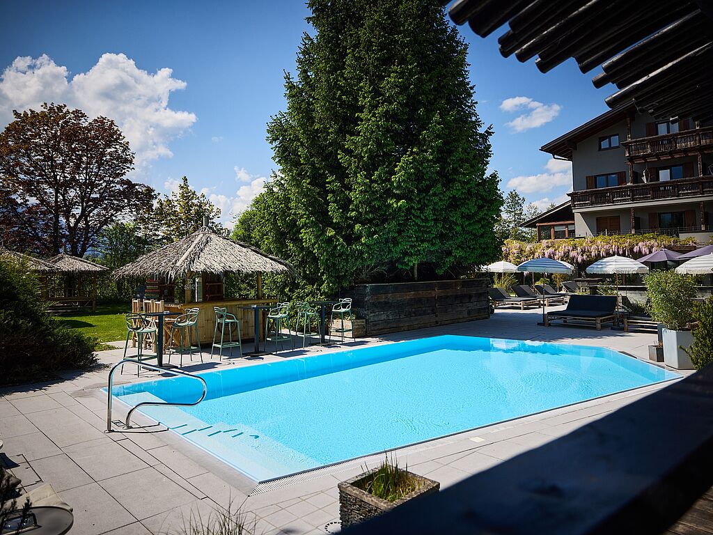 Darum erfinden sich die Gerls auch immer wieder neu. Zum Beispiel mit dem GERL's view club: ein Crossover aus Spa, Beachclub, Fitnessstudio und Loungebar mit Rooftop-Feeling. Hier kann man mit Blick auf die Salzburger Berge in der Sauna relaxen, sich im Pool erfrischen, köstliche Cocktails und hawaiianische Poke Bowls an der Strandbar genießen, unter Palmen in der Sonne liegen, sich im Bewegungsraum auspowern oder einfach bei Musik abschalten.