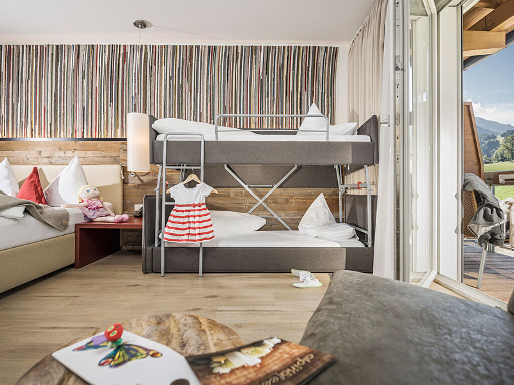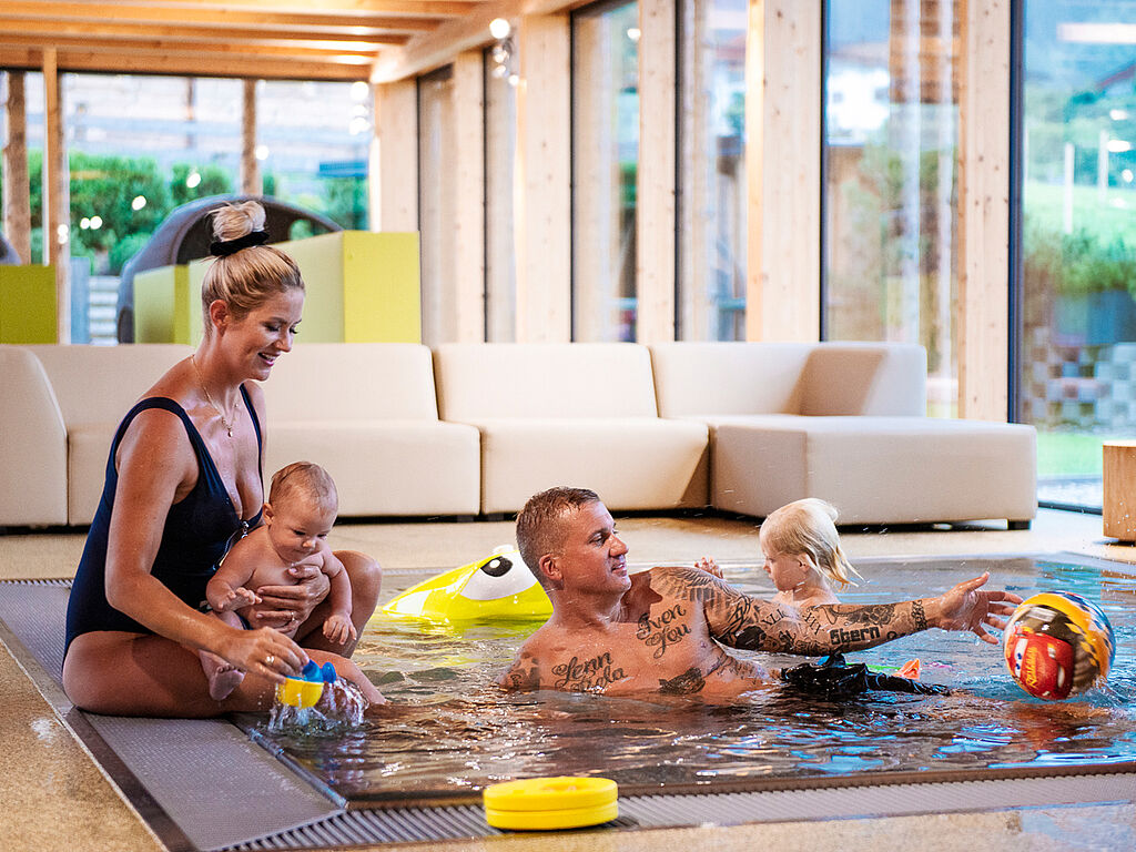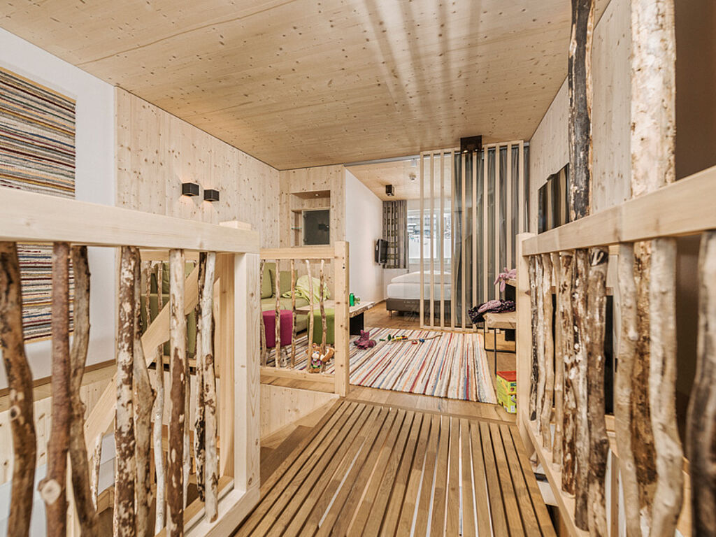Mit drei Panorama-Saunen, Erlebnisduschen und komfortabel gestalteten Ruheräumen können Sie neue Energie tanken. Das Highlight der Wellness-Oase erwartet Sie unter freiem Himmel: Der ganzjährig beheizte SkyPool (Winter 32 Grad - Sommer 30 Grad) inmitten des atemberaubenden Bergpanoramas verführt zu einem einzigartigen Badeerlebnis der Extraklasse. Nach dem Sprung ins Wasser stehen dann im Penthouse SPA (ab 16) im 5. Stock 3 Saunen und Ruheräume bereit. Das „Woody's“ ist die Bade- und Wellnesslandschaft für die gesamte Familie: Hier können die Kinder nach Herzenslust im Wasser toben, plantschen und baden. Der Activity Pool verfügt über einen In- und Outdoor-Bereich, dadurch kann der Pool im Sommer, Winter, bei Sonnenschein oder bei Regen genutzt werden. Damit der Weg ins Wasser besonders viel Spaß macht, gibt es eine Trio-Wasserrutsche! In der Family Textilsauna können die Kleinen sich entspannen und danach in der gemütlichen Panorama-Liegegalerie relaxen und neue Kraft tanken. Zudem warten ganze 700 m2 Kinderbetreuungs- und Spielfläche mit Turnsaal, Softplay-Anlage, Kletterwand u.v.m. sowie 4000 m2 Outdoor Family-Erlebniswelt mit E-Trail, Trampolin, Streichelzoo . . . Hier heißt es: einfach sorgenfrei entspannen, denn ausgebildete BetreuerInnen sorgen sich rührend um Ihre Kinder!