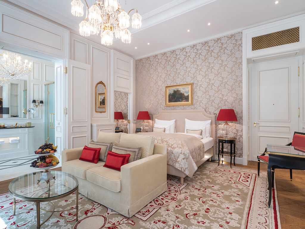 Das harmonische Zusammenspiel aus historischem Jugendstil-Charme und zeitgemäßem Komfort zeigt sich in jedem Detail des prachtvoll restaurierten Interieurs – mit seinen Antiquitäten und der berühmten, eines Museums würdigen Gemäldesammlung. Die Zimmer und Suiten glänzen mit erlesenem Mobiliar, Seidenvorhängen und ausgewählten Gemälden und Skulpturen. Heute bietet das Hotel Sacher Wien 152 Zimmer und Suiten, die von Co-Eigentümerin Alexandra Winkler in Zusammenarbeit mit dem französischen Star-Designer Pierre-Yves Rochon ausgestattet wurden. Darunter die beiden elegantesten und größten Signature Suiten „Madame Butterfly“ und „Wiener Philharmoniker Suite“ in der Beletage oder mehrere exklusive Suiten mit privater Dachterrasse. Edle Marmorbäder, feinste Stoffe und erlesenstes Interieur stehen bei Sacher nicht im Widerspruch zu modernen Annehmlichkeiten und technischer Ausstattung.