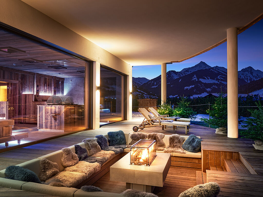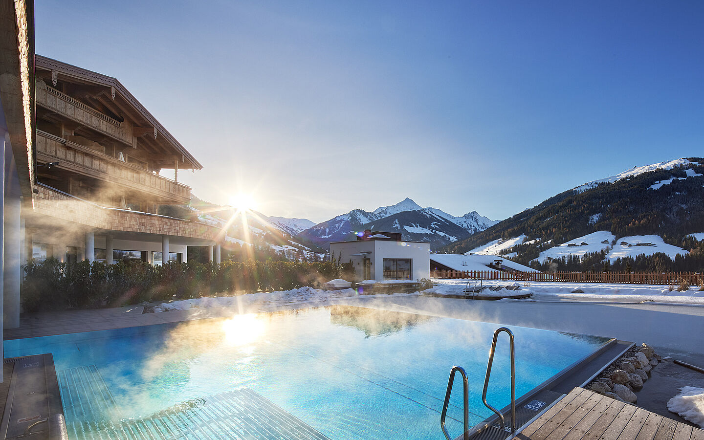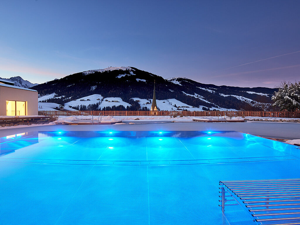 Die Verbundenheit zur Natur zu spüren war Gastgeberfamilie Duftner ein Anliegen beim neuen „pure nature.spa“. Natürliche Materialien, viel Tageslicht und Holz sowie edle Stoffe sorgen für eine gemütliche Atmosphäre, die Tradition und Moderne spielerisch vereint. Es wird viel Freiraum für die Gäste geben, naturgemäß auch im Freien. Eines der Highlights im neuen Spa seit Beginn 2024 ist ein großzügiger Naturpool mit ganzjährig beheiztem Outdoorpool und grandiosem Bergpanorama. „Adults only“ sind etwa Biosauna und Dampfbad, ebenso die Eventsauna mit täglich zwei Aufgüssen und einem wunderbaren Ausblick auf Alpbach und den Galtenberg, nach denen es sich in der Kaltwassergrotte herrlich abkühlen lässt. Gespeist wird diese aus der hauseigenen Quelle, die direkt dem Gratlspitz entspringt.