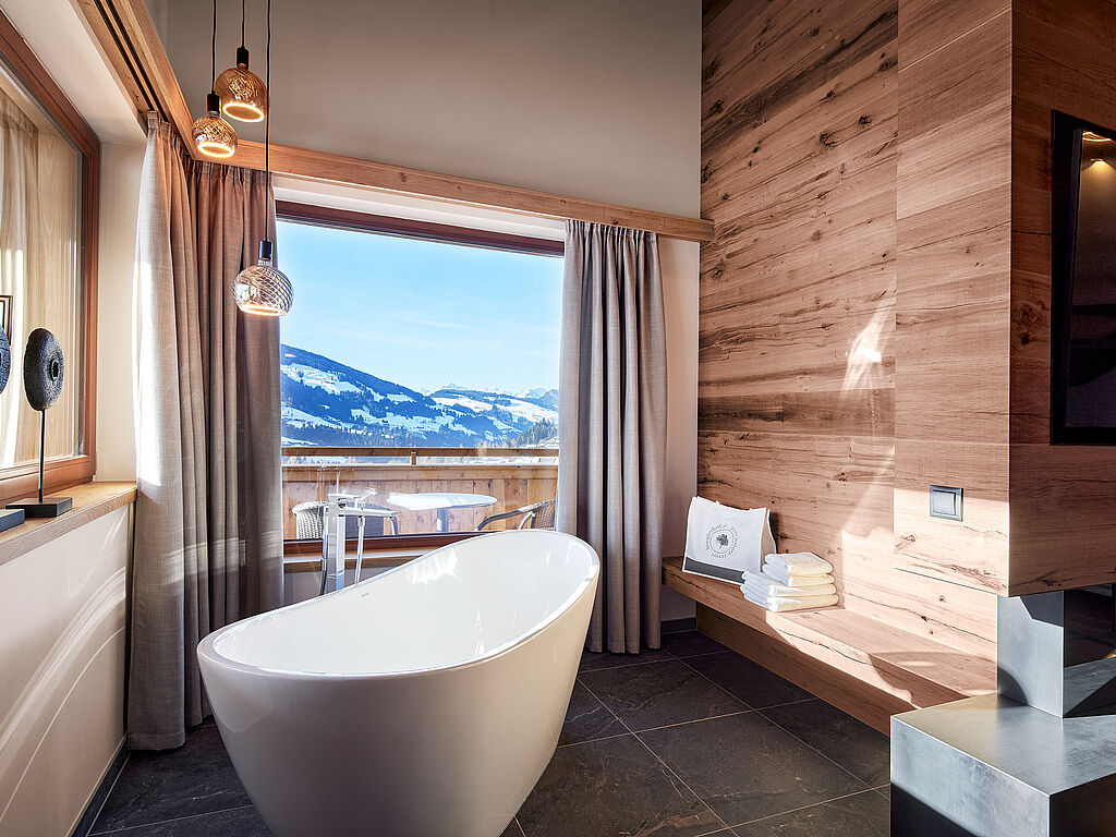 Mit ihrem herrlichen Blick auf Natur und Berge zu jeder Jahreszeit, der ausschließlichen Verwendung biologischer Materialien und der liebevollen Ausstattung sind die Zimmer und Suiten des Böglerhof pure nature resort ein heimeliger Ort zum Wohlfühlen. Die exklusiven Räumlichkeiten sind im traditionellen Alpbacher Holzbaustil eingerichtet und bestehen zum Großteil aus Zirbenholz. Diesem wertvollen Holz wird nachgesagt, einen feinen Duft zu verströmen, der das Herz beruhigt und für einen ungestörten, tiefen und entspannten Schlaf sorgt. Acht Wohlfühlsuiten, von denen vor allem die vier Penthouse-Suiten begeistern, stechen in dem Angebot heraus. Ob aus der freistehenden Badewanne oder dem Bett am Balkon – der grandiose Ausblick über die Dächer von Alpbach und den Sternenhimmel immer inklusive. Highlight ist die die Böglerhof Suite Deluxe: Die 75 m2 große Suite besticht mit hellem Zirbenholz, herrlichen Stoffen, Kachelofen, großzügig gestaltetem Wohnraum mit gemütlicher Sitzecke und einem Südbalkon mit herrlichem Panoramablick.