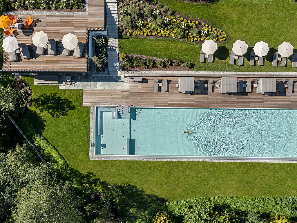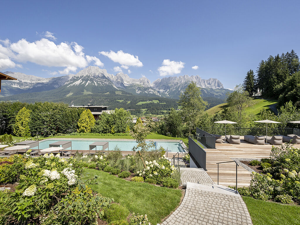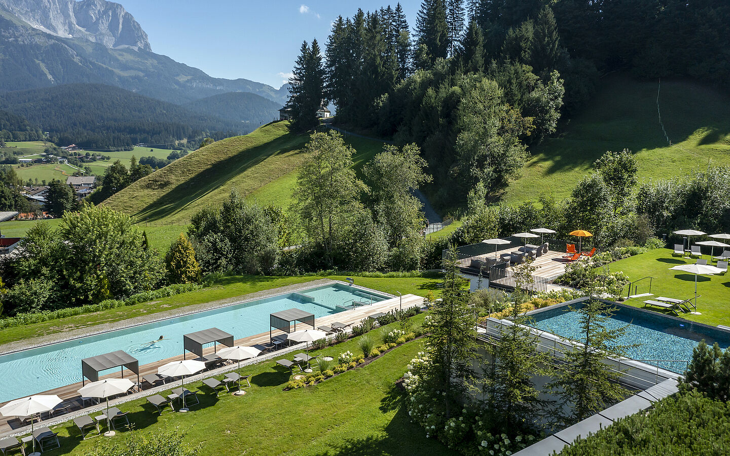 Nach einem aktiven Tag schöpft man im Badehaus samt abwechslungsreicher Saunalandschaft und ganzjährig beheiztem Infinity-Pool neue Energie. Seit Sommer 2022 dürfen sich Gäste zudem über einen neuen 30 Meter langen und sieben Meter breiten Außenpool freuen, der aussichtsreiche Schwimmbahnen mit Blick auf den Wilden Kaiser verspricht.