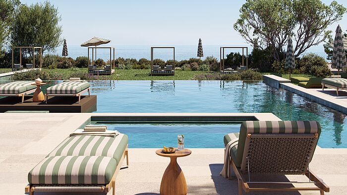 Ein neues Kapitel läutet die Mar-Bella Collection mit der Eröffnung des Avali ein. In einer geschützten Bucht gelegen, nur wenige Schritte vom Sandstrand entfernt, bietet das Boutique-Hotel ein Premium-all-inclusive-Erlebnis, das Luxus mit Leichtigkeit verbindet. Das Design ist reduziert, aber stilvoll – klare Linien, helle Farben und natürliche Materialien schaffen eine Atmosphäre, in der man sofort zur Ruhe kommt. Die 76 Suiten und Zimmer überzeugen mit durchdachter Ästhetik und spektakulären Ausblicken – sei es auf das endlose Blau des Meeres oder die üppigen Gärten, die sich sanft in die Landschaft einfügen. Der Tag beginnt hier barfuß am Strand oder mit einem Sprung in den Infinity-Pool, der nahtlos in den Horizont übergeht. Während die Morgensonne das Wasser glitzern lässt, genießen Gäste ein Frühstück mit den frischesten, regionalen Zutaten – aromatische Oliven, saftige Früchte, knuspriges Brot und feinster griechischer Honig. Wer den Tag aktiv gestalten möchte, findet zahlreiche Möglichkeiten: Stand-up-Paddling in der ruhigen Bucht, Yoga mit Blick auf das Meer oder Bootsausflüge zu versteckten Stränden. Auch geführte Wanderungen durch die duftenden Pinienwälder oder Fahrradtouren entlang der Küste lassen den Zauber der Insel hautnah erleben. Kulinarik spielt im Avali eine zentrale Rolle. Die Restaurants vereinen mediterrane Aromen mit asiatischen Akzenten und setzen auf saisonale, lokale Zutaten. Gäste können zwischen verschiedenen kulinarischen Konzepten wählen: von entspannten Buffets mit Al-Fresco-Flair über raffinierte À-la-carte-Kreationen bis hin zu einem Dine-Around-Programm, das Einblicke in die Vielfalt der korfiotischen Küche bietet. Am Abend locken Grillabende am Strand, bei denen fangfrischer Fisch über offener Flamme zubereitet wird, begleitet vom sanften Rauschen der Wellen und einem perfekt gemixten Drink in der Hand.