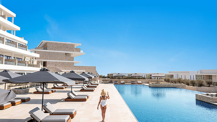 Auch gemeinsame Aktivitäten kommen nicht zu kurz. Pools, Strandausflüge und Outdoor-Abenteuer schaffen bleibende Erinnerungen für die ganze Familie. Besonders beliebt sind Wanderungen entlang der Akamas-Halbinsel, wo Natur und Geschichte aufeinandertreffen. Zudem ist das milde Wetter ideal zum Golfspielen auf einem der traumhaft schön gelegenen Golfplätze mit atemberaubenden Ausblicken inmitten der zypriotischen Natur. Die geräumigen Zimmer und Suiten des Resorts wurden speziell für Familien konzipiert. Großzügige Wohnbereiche, moderne Ausstattung und einladende Designs bieten Komfort und Privatsphäre. Die luxuriöse Einrichtung sorgt dafür, dass sich Familien sofort wie zu Hause fühlen, während der Blick auf das türkisfarbene Meer jeden Morgen zum Erlebnis macht.