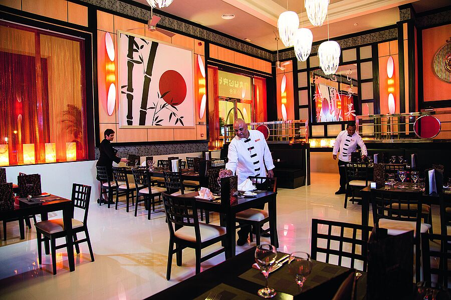 Kulinarische Höhenflüge bieten fünf Restaurants. Anhänger der italienischen, japanischen oder der Fusionsküche dürfen sich auf köstliche Geschmackserlebnisse freuen, ebenso wie alle Fleischfreunde im Steakrestaurant. In fünf Bars finden Urlauber immer das passende Getränk zu jeder Tageszeit und rund um die Uhr. Zum Abkühlen laden zwei Pools – inklusive Poolbar – ein. Auf den großzügigen Sonnenterrassen und auch am Strand stehen Sonnenschirme und Liegestühle kostenfrei zur Verfügung. Für die nötige Bewegung sorgt das Animationsteam mit Workout oder Beach-Volleyball. Auch Sportarten wie Stand-up-Paddling, Tauchen und Kajakfahren sind inklusive.