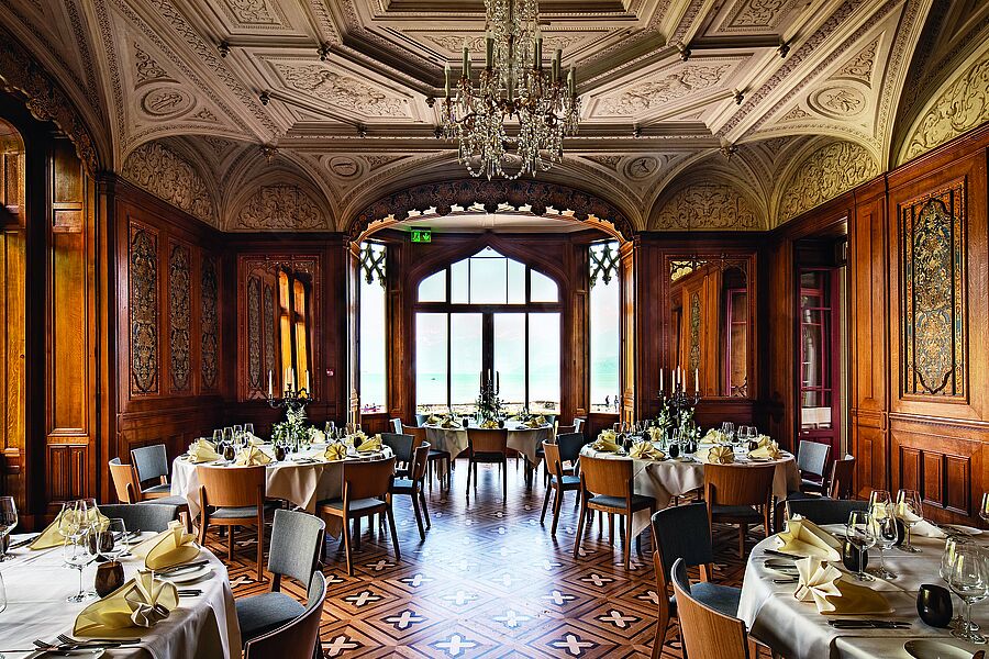 Von der herrschaftlichen Fassade bis zu den feinen Details der Innenräume: Jede Ecke im Schloss Schadau erzählt Geschichten von Eleganz und Stil, mit einem Hauch Nostalgie. Ob bei einem Besuch im exzellenten Restaurant, einem Spaziergang im zauberhaften Schlosspark oder bei einer Übernachtung in einem der historischen Zimmer – das traumhafte Anwesen ist ein Ort, an dem Vergangenheit und Gegenwart auf faszinierende Weise verschmelzen. Immer wieder fällt der Blick auf den malerischen Thunersee und die beeindruckenden Berner Alpen. Mit einer wundervollen Aussicht und kulinarischem Hochgenuss empfängt das Restaurant im Schloss Schadau seine Gäste. Serviert werden modern interpretierte Klassiker der französisch-mediterranen Küche.