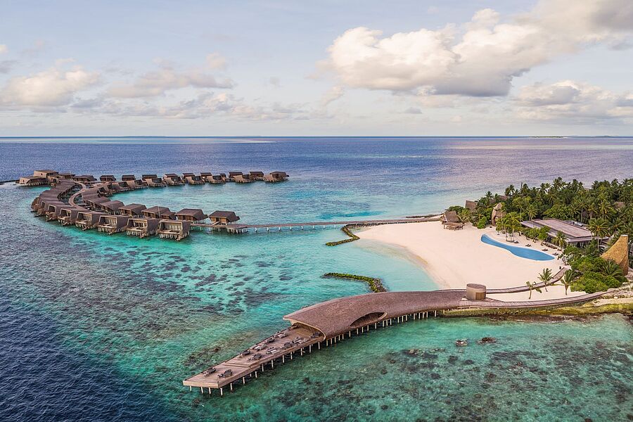 Das Resort ist zudem ein Paradies für kulinarische Genießer. Sechs Restaurants verwöhnen die Gäste mit einer Vielfalt an Aromen – von italienischer Küche im Alba bis zu asiatischen Spezialitäten im Orientale. Die Whale Bar, eine Lounge über dem Wasser, bietet bei Sonnenuntergang eine spektakuläre Aussicht und den einzigartigen „Island Mary“, eine maledivische Interpretation des legendären Bloody Mary, der ursprünglich im St. Regis New York kreiert wurde. Für Weinliebhaber hält das Resort einen unterirdischen Weinkeller mit einer Sammlung an seltenen Weinen bereit. Aktivitäten auf dem Wasser dürfen auf den Malediven nicht fehlen. Das Vommuli Dive and Water Sports Center des Resorts bietet eine Vielzahl von Möglichkeiten, das kristallklare Wasser und das lebendige Riff zu erkunden – vom Tauchen mit Mantarochen und Schildkröten bis zu geführten Schnorchelausflügen. Weitere Wassersportarten wie Jetski, Kajakfahren und Windsurfen machen den Aufenthalt zum Erlebnis. Neben einem großzügigen Fitnessbereich, einem Yoga- und Meditationsstudio und Tennisplätzen gibt es hier auch eine hauseigene Boutique. Mit all seinen Annehmlichkeiten ist das St. Regis Maldives Vommuli Resort ein Ort, an dem die Zeit stillsteht und jeden Moment in eine unvergessliche Erinnerung verwandelt – perfekt für Paare oder Familien, die gemeinsam eine Auszeit im Paradies erleben möchten.