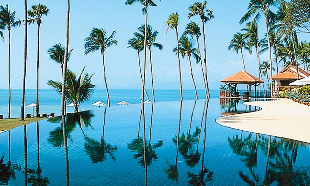 Bereits beim Check-in im exklusiven Belmond Napasai Hotel, das am palmengesäumten Baan Tai Strand in üppigen, tropischen Gärten liegt, küsst mich die Kokosnuss – in Form von köstlichem, hausgemachtem Kokoseis als Willkommensgruß! Am dynamisch geschwungenen Infinity-Pool - der definitive Eyecatcher des Resorts - genieße ich Kokoswasser direkt aus der frisch gespaltenen Kokosnuss. Das süße Nichtstun in meinem himmlischen Daybed währt jedoch bei all den free Activities des Hotels nur kurz: auf mich warten Yoga am Skydeck, gelegen am höchsten Punkt des Resorts und mit traumhaftem Blick aufs Meer und die Insel Koh Phangan. Danach versuche ich mich in Thai-Boxing im wohl idyllischten Boxring der Welt, inmitten eines Palmenhains, setze meine „Mission Coconut“ in einer Thai Cooking Class beim Zubereiten von Green Curry und Tom Kha Gai fort und genieße im Napasai Spa eine entspannende Hot Stone Massage mit warmem Kokosöl.