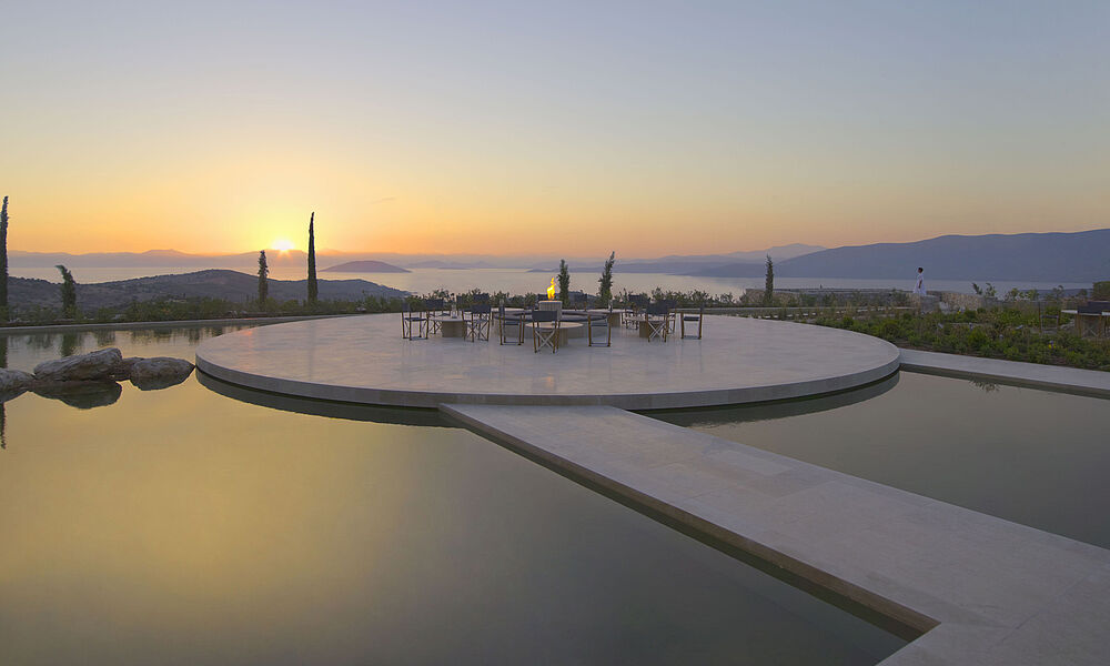 Ich will den griechischen Ursprüngen unserer Spa-Kultur nachspüren. Und wo könnte mir dies besser gelingen als im überirdisch schönen Amanzoe Resort an der Ostküste des Peloponnes? Puristisches Aman-Design „Greek Style“ erwartet mich in diesem Luxus-Hideaway, das eingebettet in Olivenhaine und Zypressen wie eine moderne Akropolis auf einem Hügel thront. Schon bei der Ankunft werde ich mit einem atemberaubenden 360°-Blick über die Ägäis belohnt – die beiden bezaubernden Inseln Spetses und Hydra scheinen zum Greifen nah.