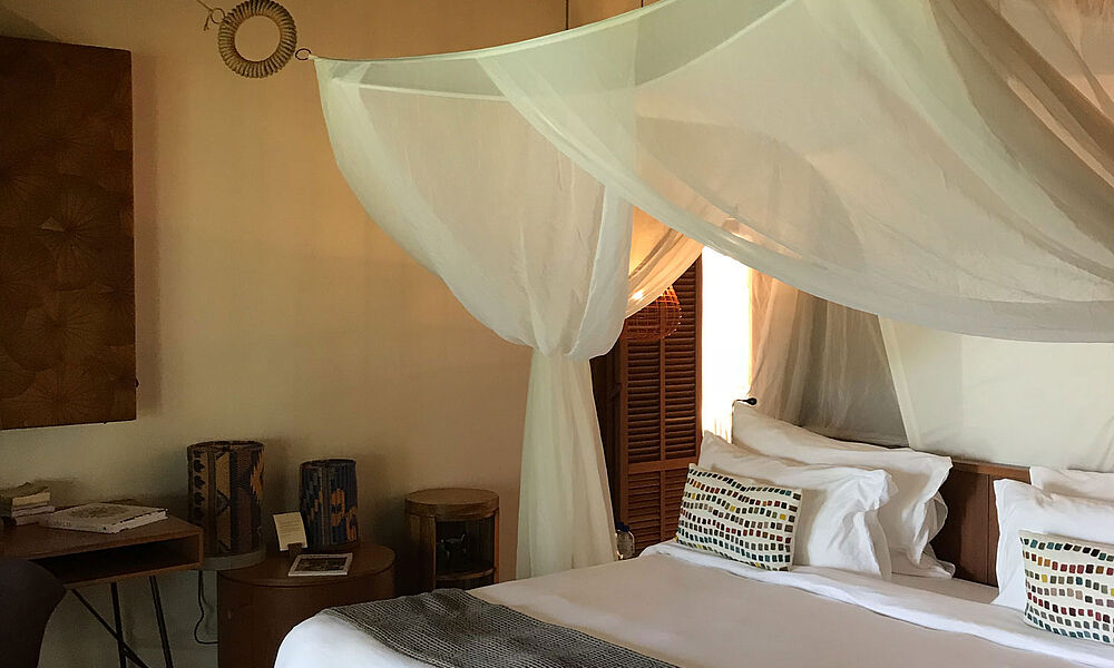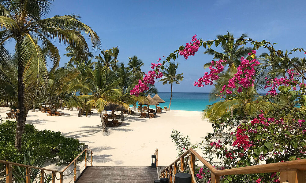 Einzigartig ist der weitläufige Zuri Garden, der das Attribut „Garten Eden“ tatsächlich verdient hat. Auf 1,6 Hektar gedeihen hier zwischen üppig blühenden Pflanzen und tropischen Bäumen exotische Früchte, heimische Heilkräuter und eben Gewürze wie Nelken, Muskatnuss, Zimt und schwarzer Pfeffer. Einsame Lichtungen mit stylischen Sofas und Hängematten laden mitten im Garten dazu ein, sich mit einem Buch in die Stille der Natur abseits des Meeres zurückzuziehen. Das eigentliche Herzstück des Gartens ist das Spice House, wo ich bei einer Cooking Class auf authentische Weise mehr über die heilende Wirkung von Gewürzen und ihren Einsatz in der Suaheli-Küche lerne. Beim geführten „Nature Walk“ auf verschlungenen Pfaden und einer anschließenden Achtsamkeitsmeditation mit der passionierten Yogalehrerin und Detox-Expertin Timi Miklos tauche ich ein in die faszinierenden Aromen der exotischen Inselflora und erfahre sie mit allen Sinnen. „Spice up your life“ gelingt im Zuri Zanzibar eigentlich ganz von selbst – Asante sana!