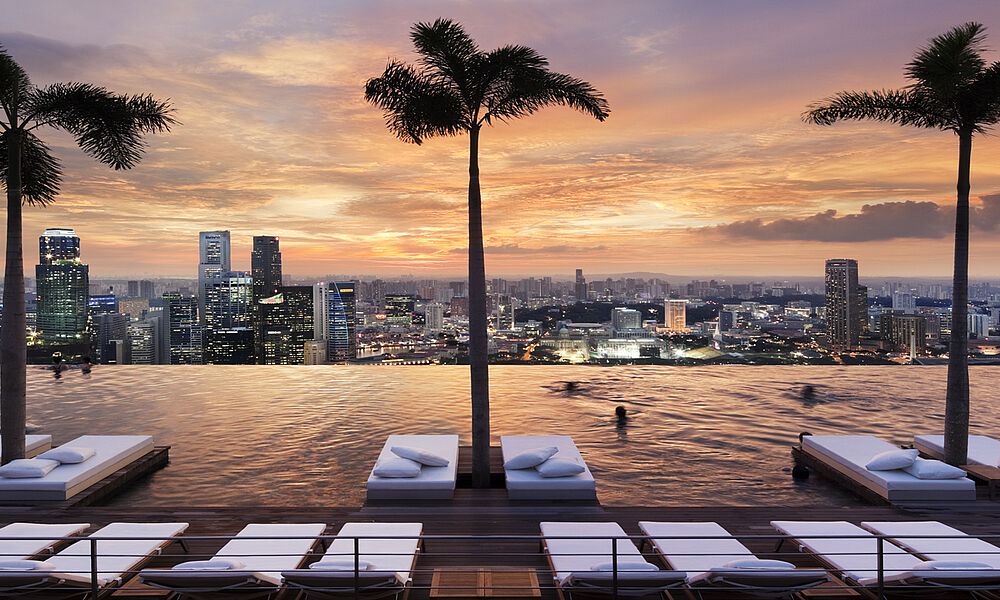 Man muss sein Hotel in der Stadt des Löwen nicht einmal verlassen, um sich der totalen Entspannung hinzugeben: So ist das legendäre Raffles Hotel nicht nur weltberühmt für seinen High Tea in wunderschönem Ambiente – koloniales Flair genießt man auch im stilvollen Raffles Amrita Spa. Eine wahre Ikone in der Skyline Singapurs ist das Marina Bay Sands Hotel mit dem weltweit größten Rooftop Pool. Den spektakulären Blick auf die Stadt genießt man jedoch nicht nur während man am Pool relaxt, sondern auch beim Sunrise Yoga auf der Aussichtsplattform des Hotels oder während man sich im wunderschönen Banyan Tree Spa verwöhnen lässt. Auch das Mandarin Oriental Hotel folgt dem Yoga-Trend und bietet Privatstunden im Outdoor Yoga Pavillon am Pool an. Nach einem Treatment im exklusiven Mandarin Oriental Spa ist die Experience Shower ein Must-Try: Farb- und Aromatherapie pur kombiniert mit wechselndem Wasserdruck in Form eines wohlig-warmen Tropical Rain, dem Polar Storm oder herrlich erfrischenden Polar Mist, bei dem feinster kühler und nach Minze duftender Nebel in hellblauem Licht den Körper umhüllt. Wer der Stadt entfliehen möchte, kann im Capella Resort auf Sentosa Island in tropischem Ambiente eine Auszeit nehmen.