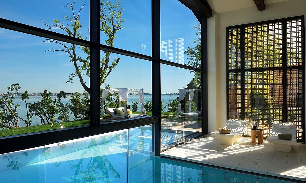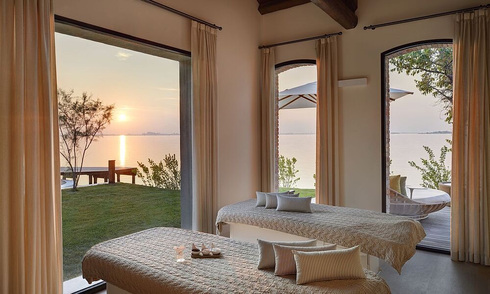 „Nah am Wasser gebaut“ trifft für den vielfach prämierten JW Venice Spa nicht nur sprichwörtlich zu, denn es ist der einzige Spa Venedigs, der direkt an der Lagune liegt. Und die ist auch hier mein heimlicher Star: die Panaromasicht von der Massageliege durch die raumhohen Fenster ist eigentlich viel zu schön um die Augen zu schließen. Und das blubbernde Bad im beheizten Outdoor-Vitality Pool nach meinem Treatment, bei dem ausschließlich auf der Isola delle Rose hergestelltes Olivenöl und aromatische Kräuter aus dem inseleigenen Garten verwendet werden, ist mit der Skyline Venedigs eine ganz besondere Erfahrung. Und wieder ist es die Magie der friedlichen Lagune, mit den Lichtspielen der Sonne auf dem spiegelglatten Wasser, die mich in ihren Bann zieht und verzaubert - und Venedig für mich zu einem perfekten Ort der Kontemplation macht.