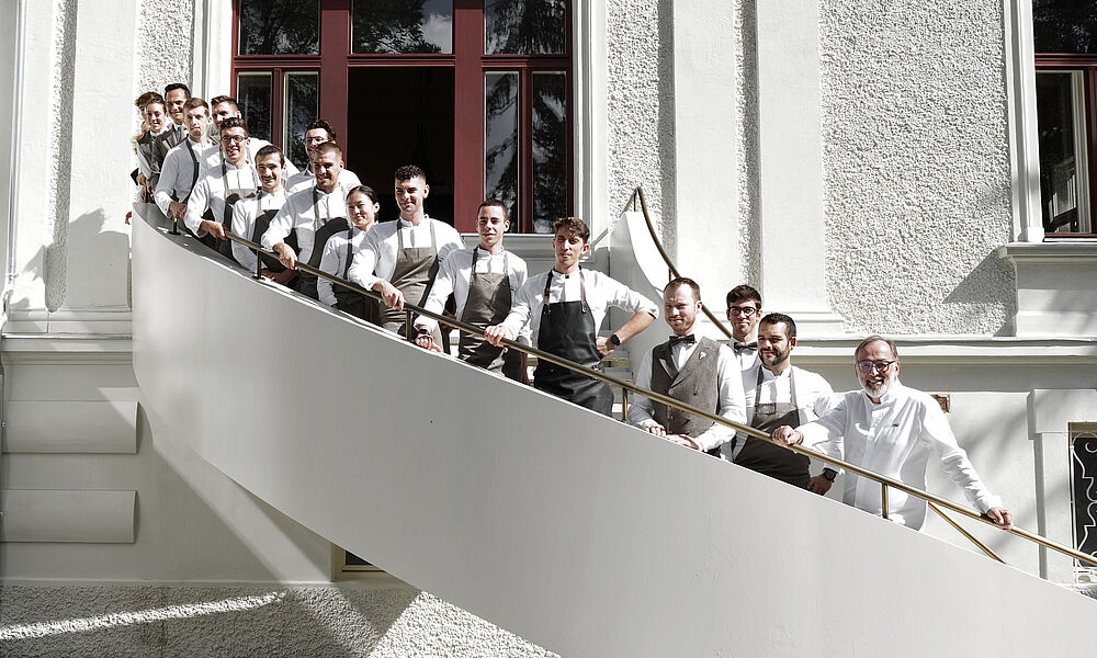 Hohe Decken, große Fensterflächen, edle Tücher und ein geradliniges Design bilden die Kulisse, in dem der genauso hochprofessionelle wie herzliche Service des Hauses rund um Restaurant-Manager und Head Sommelier Lukas Gerges echtes Wohlfühlambiente schafft. „Dafür bin ich Koch geworden: Die Leute reden miteinander, schauen, genießen, erleben“, sagt Norbert Niederkofler.