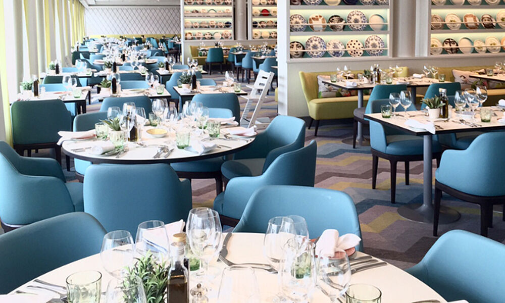 Weiter heckwärts präsentiert sich die Mein Schiff 5 dann wieder baugleich mit ihrer etwas älteren Schwester der „Mein Schiff 4“: die wunderbare Backstube mit einer ebenso köstlichen wie umfangreichen Auswahl an schiffsgemachtem Brot und Gebäck, das riesige Buffet-Restaurant „Anckelmannsplatz“, die Dependance von „GOSH Sylt“ mit Sitzplätzen drinnen und draußen ...