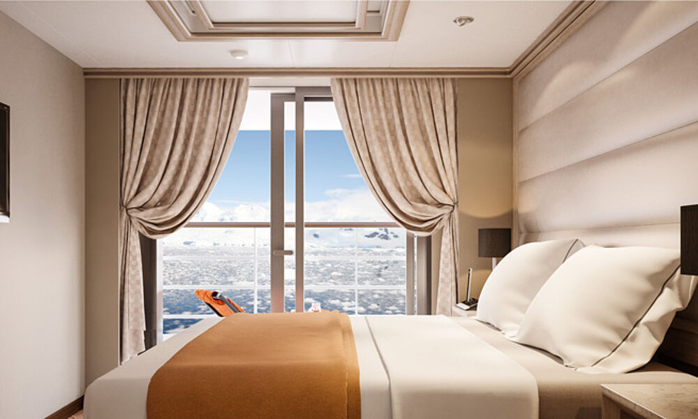 Seven Seas Explorer. Ihre 280 Quadratmeter große Regent Suite verfügt sogar über einen eigenen Spa-Bereich und einen 130 Quadratmeter großen umlaufenden Privatbalkon. Zusätzlich steht den Gästen der Regent Suite in jedem Hafen eine private Limousine mit Fahrer zur Verfügung, damit es auch an Land nicht nur „alles inklusive“, sondern auch „alles möglich“ heißt.