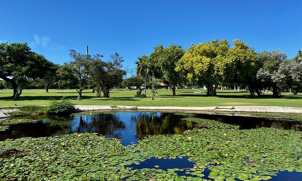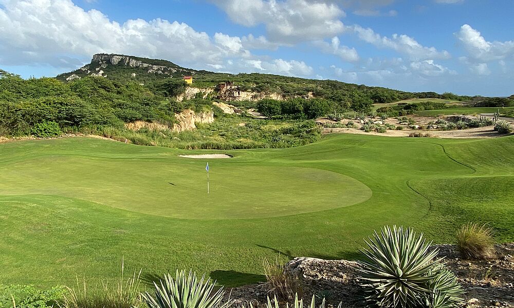 „Dushi“ in der Einheimischen Sprache Papiamentu begegnet einem überall auf der Insel und bedeutet „schön“, wie die Streetart Malereien in der Weltkulturerbe-Stadt Willemstad mit ihren bonbonfarbenen Kolonialhäusern, „gut“ wie der Orangenlikör Curacao, den man in der heimischen Likörfabrik verkosten kann und „phantastisch“ wie die 35 Puderzucker-Strände und Buchten am türkisblauen Meer. Hier auf der größten der Antilleninsel haben wir rückblickend leider nur vier Tage eingeplant, davon dreimal Golf, einmal Segeln und eine Inselerkundung mit dem Leihwagen. Da lohnt es sich schon mal direkt im Blue Bay Curaçao Golf & Beach Resort, einem 220 Hektar großen Urlaubs-Paradies mit Hotels, Villen und sämtlichen Sportmöglichkeiten zu wohnen. Zumal auch der gleichnamige 18-Loch Course des Designer’s William ‚Rocky‘ Rocquemore mitten im Resort liegt und war von unserer Villa aus in 5 Minuten mit dem Auto erreichbar ist. „Easy going“ ist hier angesagt oder sollte man besser sagen „karibisch entspannt“? Denn obwohl der Platz gut besucht ist kommt kein Stress auf. Der ergibt sich eher beim Spiel über Wasser und Deserts, auf hügeligen und ondulierten Fairways, downhill über Felsen zum Meer oder über Gräben aufs Grün. Das vielfältige und unterschiedliche Layout macht das Spiel interessant und die Abschläge Richtung Meer gewähren tolle Ausblicke. Gut, dass ein Cart hier obligatorisch ist denn das lässt einem Zeit, die phantastischen Ausblicke auf Meer, die sattgrünen Fairways und den Strand zu genießen. Dieser liegt unmittelbar an der 18 sodass einem Sprung ins Wasser oder einem Blue Curacao an der Bar nichts im Wege steht. Ob wir den 9-Loch Curaçao Golf & Sqash Club aufgrund der kurzen Zeit und der vielen Möglichkeiten hier überhaupt spielen sollten, war die Frage. Ja, denn er ist mit 90 Jahren der älteste der Karibik und wurde schon 1931 von den Raffinerie-Arbeitern angelegt. Etwa 100 Mitglieder kümmern sich heute um die Erhaltung, deshalb haben sie auch Vorrang beim Spiel. Und das ist Genuss pur: Breiten Fairways im leicht hügeligen Gelände, zwischen exotischen Bäumen und wenig Wasser- oder sonstigen Hindernissen. Das glatte Gegenteil aber ein richtiges Aha-Erlebnis ist dagegen der Old Quarry GC, der schon mal zum besten der Karibik gewählt wurde. Kein geringerer als Golf-Designer Pete Dye hat hier im Südosten 18 beeindruckende Golfbahnen angelegt, die sich auf drei Bereiche verteilen: Am Meer, an der Spanish Water Bucht und am Tafelberg. Mit seiner flachen Spitze ähnelt er dem südafrikanischen Tafelberg und hat außerdem noch eine Attraktion zu bieten: einen Abschlag von 198 Metern auf das 13. Grün. Aber das ist sicher nicht der alleinige Grund warum der Meisterschaftsplatz zu den besten der Karibik zählt: auf den Front-Nine geht es ziemlich zur Sache – auf schmalen Fairways mit einigen Doglegs, Deserts, Buschwerk und gefährliche Bunker vor den Grüns. Die Back-Nine beginnen im teils felsigem Terrain unter dem Tafelberg aber mit PAR-Chancen, auf der 13 mit Blick auf die Marina und Serpentinen nach oben auf der 15, dem zweitschwersten Loch. Versöhnlich gestaltet sich das Par 5 auf der 17 um dann auf der 18 mit einem gigantischen Downhill-Shot diese Traumrunde zu beenden. Das Santa Barbara Resort gleich daneben ist gerade geschlossen, weil es demnächst als „Sandals Curaçao“ wieder eröffnet. Man darf gespannt sein auf ein Wiedersehen Ende des Jahres. Neugierig sind wir auch auf die Chi-Chi-Kunstgalerie der Berlinerin Serena Israel im Nordosten der Insel. Die überdimensionalen bunt bemalten Puppen mit großen Brüsten und ausladendem Hinterteil sind ihr Erzeugnis und erinnern an Niki de Saint Phalle. In Curaçao sind sie Sinnbild der älteren Schwester, die die Familie zusammenhält. Mittlerweile sind die ganz unterschiedlich bemalten Kunstwerke berühmte Souvenirs geworden, so dass die Berlinerin, die hier schon über 30 Jahre lebt bereits 70 Maler beschäftigt, denen sie damit Arbeit gibt. In ihrem Shop in Willemstad findet man die Chi-Chi´s ebenfalls in allen Größen. Die Stadt ist übrigens wegen der Pandemie und in Ermangelung der Kreuzfahrtschiffe zur Zeit fast ausgestorben, deshalb kann man sich mit Genuss die Graffitis und bunt bemalten Häuser betrachten oder im „Terra Boutique Hotel“ noch eine Nacht bleiben.