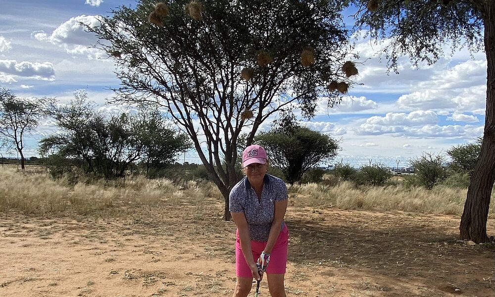 Ja, auch Golf steht auf dem Activity-Programm der Lodge und natürlich mit Shuttle zu den beiden Plätzen, die etwa eine Stunde Fahrtzeit entfernt liegen. Man braucht sich um nichts kümmern, weder um das Greenfee noch um das Equipment. So starteten wir als erstes zum Omeya Golfclub, ein 18-Löcher Championship-Course, designt von Golf-Ikone Peter Matkovich. Angelegt zwischen Bäumen und einem trocken gelegten Flussbett verlaufen die Fairways in der typisch namibischen Landschaft ohne große Hindernisse und garantieren einen guten Score. Ein Cart ist automatisch gegeben, so kann man sich gemütlich auf sein Spiel konzentrieren. Abgelenkt wir man dann nur durch die tief fliegenden Flugzeuge, die am nahegelegenen Airport landen.