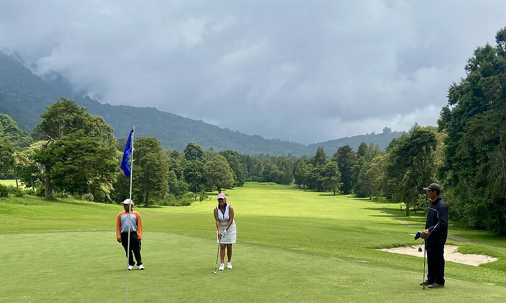 Zurück in Nusa Dua logierten wir im luxeriösen Apurva Kempinski Bali Hotel, das auf einer majestätischen Klippe mit atemberaubendem Blick auf den Indischen Ozean und den tropischen Gärten darunter liegt. Wie ein majestätisches Freilufttheater wirkt es auf den ersten Blick, in dem sich über 475 Zimmer, Suiten und Villen, teil mit eigenem Pool verteilen. Unvergessen das Dinner im Koral Restaurant, einem riesigen Aquarium mit bester Fisch Küche oder das Hot Pot Essen im Bai Yun Restaurant. Dieses Mal mussten wir eine zweistündige Reise über Denpasar zum ältesten Golfplatz Balis in Kauf nehmen, denn der Handara Golf Course liegt im Hochland von Caldera auf 1400 Meter, auf einem Krater eines erloschenen Vulkans. Bei kühlen Temperaturen spielt man 18 Löcher mit vielen Doglegs und Höhenunterschieden. Der Dschungel verläuft dicht am Rande der meisten Fairways und umkreist viele der Grüns, die ziemlich schnell sind. Gut, dass die Caddies den Weg wissen, denn bei den vielen Blindlöchern hätte man sonst Schwierigkeiten.