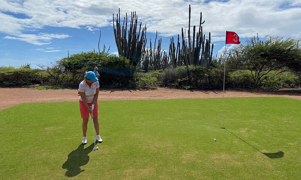 „Willkommen auf Bonaire“ heisst es schon einladend am kleinen Flughafen und das bedeutet: ED-Karte (digitale Einreiseform) vorzeigen und einen gültigen PCR-Test, dann kann man ohne weiteres auf die Östlichste der drei Buchstabeninsel einreisen. Entschleunigung mit ungestörter Entspannung wird hier garantiert, außer zu den Weihnachtsfeiertagen. Da wird hier geschossen, was das Zeug hält und der Himmel ist voller künstlicher Sterne. Besonders gut zu sehen, wenn man mitten in der karibisch bunten Hauptstadt Kralendijk wohnt. Zum Beispiel im neu eröffneten „Senses“ Boutique-Hotel direkt an der Strandpromenade mit dem tollem Fischrestaurant „It Rains Fishes“ gleich nebenan. Ruhiger und einen Tick luxeriöser logiert man allerdings etwas außerhalb im Habour Village mit eigener Marina, Beach Club und privatem Strand direkt am Meer. Drinnen wähnt man sich in sonnengelben Häusern, umgrenzt von blühenden Pflanzen und Palmen wie im Garten Eden. Das Restaurant im authentischen Schiffs-Design bietet kreolische Köstlichkeiten, die offene Bar eigene Kreationen und das „Oscar´s ein opulentes Frühstück. Der Großteil der Feriengäste sind natürlich Holländer, die in ihren FeWo´s und Häusern leben und sich wie selbstverständlich mit den „Locals“ mischen. Deshalb ist auch die Amtssprache Niederländisch und vor allem in den Restaurants kann man sich auch gut auf Deutsch verständigen. Und das ist gut so, denn die Küche hier spielt alle Stücke – vom kreolischen Curry, leckerem frischen Fisch bis zur Sterneküche des Niederländers Jonny Boer, der in seiner Heimatstadt Zwolle das Restaurant „de Librije“ betreibt und dafür mit zwei Michelin-Sternen belohnt wurde. Keine Frage, das 6-Gänge Dinner bei Sonnenuntergang direkt am Meer ist köstlich und die Kulisse dazu einfach nur phantastisch. Uns hat natürlich neben all den Tauch- und Surfangeboten der Golfplatz „Piedra So“ interessiert. Der einzige auf der Insel liegt etwas außerhalb „in the middle of nowhere“ und das Abenteuer beginnt eigentlich schon auf der Fahrt dorthin wo uns eine Sandwüste erwartet. Hier ist der niederländische Pro Florus Josten Herr über Driving Range, zwei Container mit Equipment und Bar sowie 18 Bahnen, die im Sand zwischen Gebüsch und Kakteen verlaufen. Aufgeteet wird mit Gummi-Tees, abgeschlagen auf grünen Matten und geputtet auf viereckigen Grüns, die – na ja geradeso noch genannt werden können. Nichtsdestotrotz hat der „Links“ schon seine Tücken: die ständige Brise vom Meer, unübersehbare Bahnen mit Doglegs, und teils schmale Annäherungen mit unüberwindbarem Gebüsch als Einfassung. Heißt – verschwundene Bälle braucht man erst gar nicht zu suchen. Dafür tauchen als Zuschauer hin und wieder ein paar Wildesel auf, die sich offenbar in dieser Sandwüste wohlfühlen. So sind auch die Preise hier: 25 Dollar kostet ein Tages-Greenfee mit Trolley und auch für die Übungs-Stunde, die es auch auf Deutsch gibt. Von dieser steinigen Sandwüste in den grünen Norden ist es nur ein Katzensprung. Die Fahrt durch den Washington Nationalpark mit dem 240 Metern hohen Subi Brandaris Berg, einem Naturreservat voller seltener Vogel- und Kakteenarten endet für uns an den Salzseen Gotomeer mit den Flamingos, die der Insel auch den Beinamen „Flamingoinsel“ verliehen. Die schönsten Tauchreviere gibt es im Westen mit den vorgelagerten Korallenriffen und die beständigen Passatwinde für Segler und Surfer am Sorobon Beach. Bevor man sich dort zum Relaxen niederlässt sollte man allerdings noch „The spirit of Bonaire“ in Rincon probieren. Dass es sich dabei um den Rum Rincon handelt erfährt man in der Cadushy Distillery des Holländers Eric Gietman. Auf seinem Anwesen wird einiges hochprozentiges angeboten: neben Rum, Whisky und Vodka auch Gin aus 13 botanischen Kräutern und last not least der berühmte „Cadushy of Bonaire Liqueur“ aus Kakteen in sechs Geschmacksrichtungen - als bestes Mitbringsel für zuhause.
