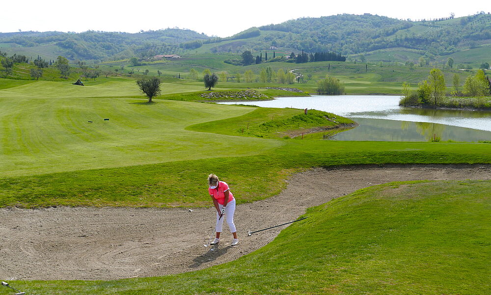 Nur 12 Kilometer von Siena entfernt führt eine etwas holperige Strasse zum „La Bagnaia Golf & Spa Resort“. Ein kleines Paradies für Flora und Fauna, wo sich Rehe, Fasane, Feldhasen und Pferde frei bewegen können. Mitten drin die 18 Löcher des Royal Golf La Bagnaia, eingebettet in die sanfte toskanische Hügellandschaft. Kein geringerer als Robert Trent Jun. hat darin in unverwechselbaren Stil ein geradezu perfektes Layout entworfen, das uns ein genussvolles Spiel bescherte. Vor allem deshalb, weil wir keiner Menschenseele hier begegneten. Auch das gleichnamige Resort, ein feines Curio-Hotel der Hilton-Gruppe könnte man als authentisches Hideaway bezeichnen: 99 Zimmer und Suiten im toskanischen Stil verstecken sich in mittelalterlichen Gebäuden, die sich perfekt in die zwei Dörfer Borgo Bagnaia und Borgo Filetta aus dem 12. Jahrhundert integrieren. Wie der Name „Bagnaia“ schon verspricht kann man hier auch Thermal-Baden und zwar im „Buddha Spa“ mit mehreren Becken und asiatisch angehauchten Wellnessbereich. Zum Weinverkosten ist es dann nur mehr ein Katzensprung zu den Weinhochburgen Chianti, Montalcino, Pienza und Montepulciano.