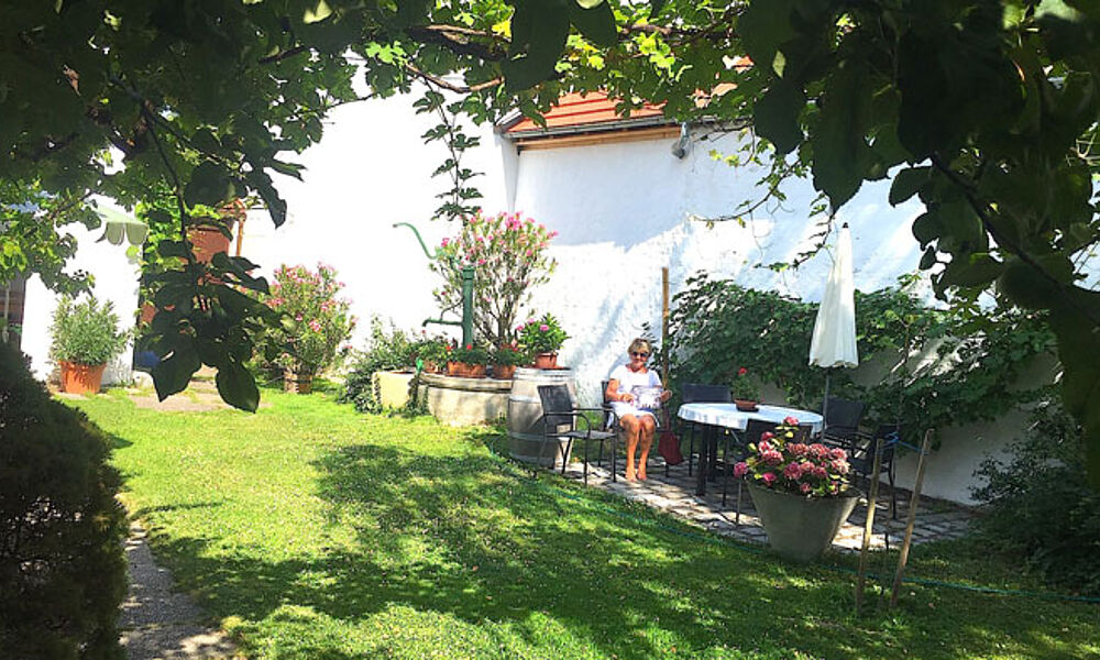 Genuss pur versprechen auch die pannonischen Gästezimmer. Man findet sie in einer eigenen Broschüre und die Bilder dazu sind so ansprechend, dass man keine andere Alternative dazu sucht. Nur leider sind sie meist schnell ausgebucht. Das Gästehaus Moser in Purbach ist so eines und mit viel Glück haben wir noch ein Zimmer ergattert. Als ehemaliges Weinhauerhaus aus dem 17. Jahrhundert wurde es beständig renoviert ohne aber die traditionellen Merkmale, wie die markante Gewölbedecke der ehemaligen Tenne kaputt zu machen. Das ganze Ambiente mit gemütlichem Wohnzimmer und Bibliothek, mit blühendem Innenhof, wo man toll relaxen kann und hübschen Zimmern ist atmosphärisch und sehr gepflegt. Die Gastgeberfamilie freut sich über viele Stammgäste, die sie mit opulentem Frühstück verwöhnt.