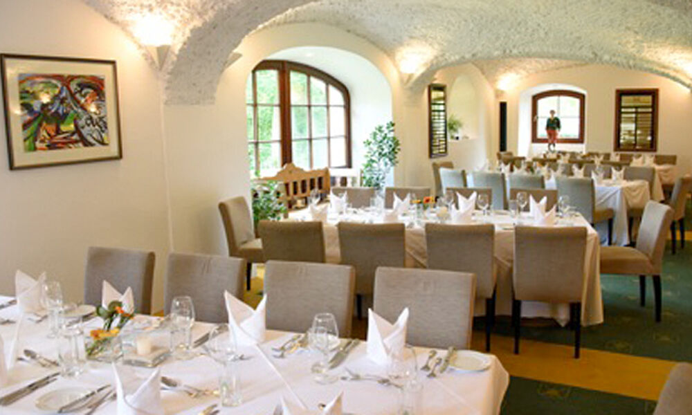 Damals im Jahr 1888 bot der tüchtige Gast- und Landwirt Johann Gmachl seinen Gästen im Anschluss an das erfrischende Bad in seinem Schwimm-, Steh- und Sitzbad Bratwürste und Hendl an. Heute gibt es dort neben diversen Spezialitäten auch mariniertes Grillfleisch, Lammspezialitäten und Brühwurstsorten aus eigener Produktion. Frische Kräuter kommen aus dem eigenen Kräutergarten und frischer Fisch aus dem Forellenbassin. Laue Sommer-Abende bei Kerzenschein verbringt man hier unter alten Kastanienbäumen, im Winter eher am offenen Kamin bei feinen Weinen in der Hotelbar.