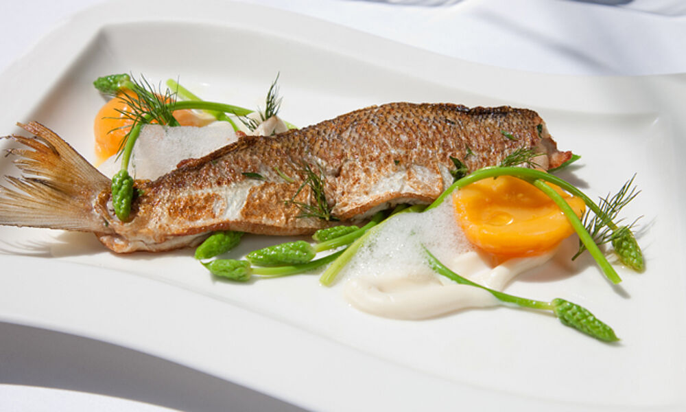 Aber auch die leckere Haubenküche des jungen Küchenchefs Christian Kastenmeier, der in vier gemütlichen Stuben seine österreichische Küche, modern interpretiert serviert. Wie etwa: Zweierlei vom Spanferkel mit Kräuterknödel und lauwarmen Speck-Kraut-Salat oder Rücken vom Salzburger Hirsch mit Wurzelgemüse, Morcheln und Kirschen. Zudem wird jeden Sonntag ein nach altbewährter Rezeptur zubereiteter Braten aufgetischt.