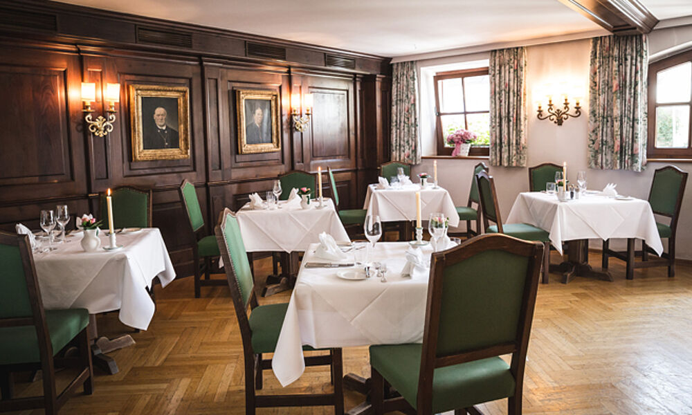 Gegründet als kleiner Landgasthof im Jahr 1334 lebt der Familien geführte Betrieb heute in der 23. Generation. Natürlich hat es in dieser Zeitspanne einige behutsame Veränderungen gegeben ohne allerdings den historischen Charme einzubüßen. So erlebt der Besucher beides: ein 4-Sterne-Superior Hotel mit 73 Zimmer und Suiten, teils im gemütlichen Landhausstil im Stammhaus und zeitlos modern im Anbau. Dabei versprühen Holzvertäfelungen an den Wänden und gemütliche Polstermöbel einerseits Urigkeit, während Farbtupfer in lila und rosa sowie antike Accessoires aus früheren Zeiten für eine persönliche Note sorgen.