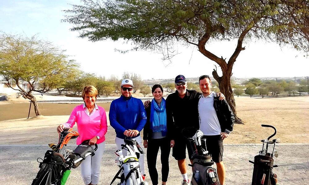 Ja, wo liegt eigentlich Bahrain? Auf Wiki finde ich die Erklärung: Das Königreich Bahrain liegt im Persischen Golf, an der Ostküste von Saudi-Arabien und ist mittels einer 25 km langen Brücke, dem „King Fahd Causeway“, mit dem Festland von Saudi-Arabien verbunden. Im Südosten grenzt der Inselstaat an Katar und nördlich befindet sich der Arabische Golf. Die Temperaturen sind gerade jetzt perfekt für´s Golfen und mit drei Golfanlagen kann sich der kleine Wüstenstaat ja sehen lassen. Etwa 20 Minuten von der Hauptstadt Manama lädt die 27-Loch-Anlage vom Royal Golf Club zu einer wahrlich königlichen Runde Golf ein. Kein Wunder, denn das Layout stammt aus der Feder der Golf-Ikone Colin Montgomerie. Im Jahr 2008 eröffnete er 18 Löcher plus den 9-Loch Par 3 Platz namens „Wee Monty Course“ – perfekt für Golf-Einsteiger oder zum Üben mit Flutlicht-Anlage. Seit 2012 wird der Platz von Troon Golf gemanagt, die 2015 mit dem World Golf Award ausgezeichnet wurden. Vielleicht auch deshalb, weil es hier ein unvergleichliches Angebot gibt: Von der Golfakademie, dem Fußball-Golf, Meeting – und Banqueträume, „Weddings“, Fine Dining und einem riesigen Pro Shop mit dem besten Golf-Equipment. Ich bekomme hier die neuesten Callaway-Schläger zum Leihen, die besser sind als meine daheim. Da kann man ja nur gut scoren - und das mit Birdie & Par! Aber kein Wunder – für Ladies ist der Platz relativ kurz, hat übersichtliche Abschläge und keine besonderen Hindernisse. Facit: ein wunderschönes Golferlebnis, das man nicht so schnell vergisst. Ganz anders der zweite 18-Loch-Platz in der Nähe des Royal. Historisch gesehen gibt es den Awali Golf Course schon seit 1927, als Arbeiter des Erdölunternehmens Bapco aus den USA das Golfspiel in Bahrain einführten. In der Nähe ihres Firmengeländes in Awali bauten sie sich sechs Sand-Fairways, um nach der Arbeit spielen zu können. Unter dem Namen Bapco-Golfclub wurde er bis 1937 von den Angestellten geleitet. Die heutige 18-Loch-Anlage baute man in den 40er-Jahren und 1964 fand hier die erste Bahrain Open Championship statt. Auch heute noch spielt man auf einem kompletten Wüsten-Layout - was bedeutet, der Ball muss auf einer grünen Matte aufgeteet werden und die „Grüns“ sind aus braunem Sand und haben noch keinen Grashalm gesehen. Einziger Vorteil – auf dem gepressten Sand laufen die Bälle elendiglich weit und man hat wieder einmal seinen eigenen „Longest Drive“ von gefühlten 200 Metern.