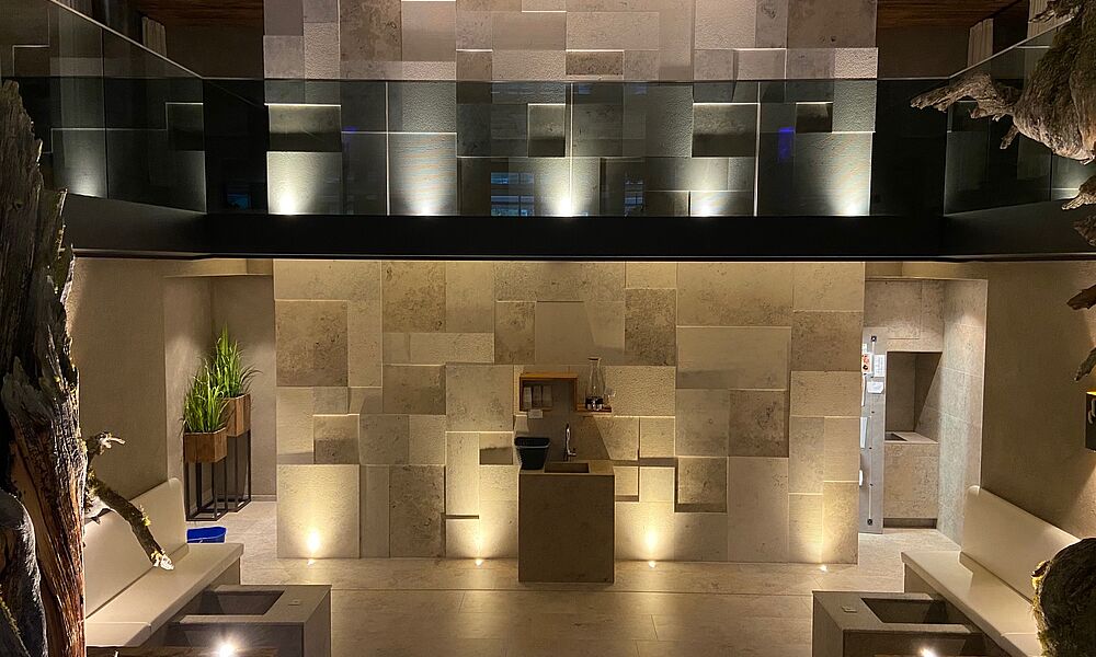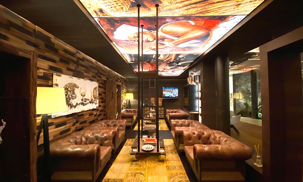 Auch wenn dies kein Hoteltest wie für Connoisseur Circle werden soll – das Bild und die Atmosphäre hier ist es allemal wert, genauer beschrieben zu werden. Kreisrund auf verschiedenen Ebenen mit Sitzecke und Kamin ist der Eingangsbereich nämlich Schnittstelle zwischen Empfang, Restaurants, Bar, den beiden Wohnbereichen sowie dem SPA und Wellnessbereich. Dass dies atmosphärisch absolut stimmig gelungen ist, dafür gebührt den heimischen Architekten grosses Lob. Alleine die in verschiedenen Farben changierende Bar ist ein Hingucker ebenso der Wein-Tresor mit exzellenter Auswahl am Eingang des Restaurants zur Einstimmung auf das perfekt abgestimmte 6-Gänge-Menü. Die rustikale „Finki´s Stubm“ als Reproduktion einer Törggelen-Stube und die Cigar-Lounge mit edlem Interieur ist eigentlich viel zu schade nur für Raucher. Stimmig auch die Lounge mit Bibliothek und vor allem die Außen-Terrasse mit modernen Schaukelstühlen und türkisen Textilien als farbliche Tupfer. Soviel zum 1. Eindruck, der sofort Sympathien weckt und noch gekrönt wird durch den aufmerksamen und unaufgeregten Service. Für mich immer eine Bestätigung der 5-Sterne-Qualität und als Polarität zu anderen Häusern. Dass man natürlich in einem nun erst vier Jahre alten Hotel mit 5-Sterne Qualität auch vorzüglich logiert ist selbstredend. Aber hier spürt man auch das glückliche Händchen von Helga Fink, die dem Styling mit Granit, Holz und Glas noch mit viel weiblicher Intuition den persönlichen Stempel aufdrückt. 33 Suiten, zum Teil mit Jacuzzi auf der Terrasse, und Liegebetten mit Blick auf das Bergpanorama rundum bieten ein so wohnliches Interieur, dass auch mal bei Schlechtwetter kein Stimmungstief droht. Natürlich gehört dann auch der Spa-Bereich zu den „Places to be“. Auf 4.000 qm glänzt das „Spa-radies“ mit moderner Ästhetik und grandiosen Ausblicken auf die malerische Bergwelt des Passeiertals. Großzügig fallen die diversen Saunalandschaften, zweistöckige Ruheräume, Relax- und Infrarotliegen sowie die Sauna Bar mit frischem Obst, Quellwasser, Tees, vitalen Säften aus. Und wer noch nie in einer Loftsauna zum Schwitzen kam, der kann es hier tun und danach im Sole-Pool oder in den Kuschelnestern mit grandiosem Blick von oben ins Tal relaxen. Die Qual der Wahl hat man dann bei den Anwendungen: Eines der Signature Treatments ist das 80-minütige Aqua Haki Flow Erlebnis. Dabei wird der Körper des Gastes im Wasser über Bänder gezogen, gedehnt, gespürt und wahrgenommen – absolut entspannend. Ich entscheide mich für das „Vinoble-Select“ Programm, weil ich mich schon seit der Gründung der Kosmetikserie durch Luise Köfer in der Steiermark von der Wirksamkeit der Produkte überzeugen konnte. Und – dass eine 80 Minütige perfekte Anwendung ein sehenswertes Ergebnis zur Folge hatte, soll hier natürlich erwähnt sein. Mittlerweile gibt es ja über 200 Spa´s in 14 Ländern weltweit, die diese Produktlinie mit Wein-Extrakten führen und das spricht für sich – und für das Hotel, das ja auch mit besten Weinen bestückt ist. Fast würde man bei dem immensen Angebot auf den eigentlichen Grund der Reise vergessen – und das ist natürlich Golf!