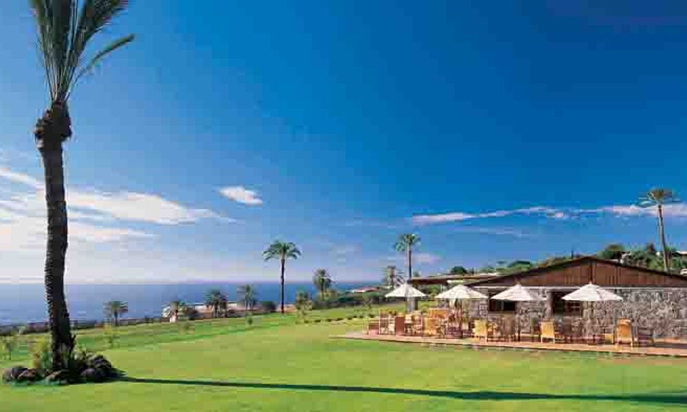 Schon der 1. Abschlag macht trotz Hitze (25°) Gänsehaut: Von 175 Meter über dem Meer windet sich ein grünes Band von 18 Fairways, gespickt mit Palmen, Bananen- und Orangenbäumen, Bougainvilleas und Kakteen den Vulkankegel hinunter. Dazu noch Meer satt nach allen Richtungen und – man staune – auch Bergblick. Denn der majestätische Teide, höchster Berg Teneriffas, leuchtet mit seiner weißen Spitze bis hierher und gibt dem Heimweh keine Chance. Dieses und etwaige Gedanken an Plätzchen- und Glühweinduft, kommen hier gar nicht erst auf, dank der Genuss-Abschläge über Terrassen hinweg, Fairways, die bis ins Meer hinein zu wachsen scheinen und Grüns, so glatt als wären sie eben gebügelt worden. Dennoch, Herzklopfen ist angesagt, wenn die Bälle mit Slice in den Abgründen verschwinden, Gräben und Neuanpflanzungen im Weg stehen, wie an Loch 2 (Par 4) und Loch 3 (Par 5) oder das Grün sich hinter Kakteen versteckt, wie an Loch 5 (Par 4). Loch 10 ist